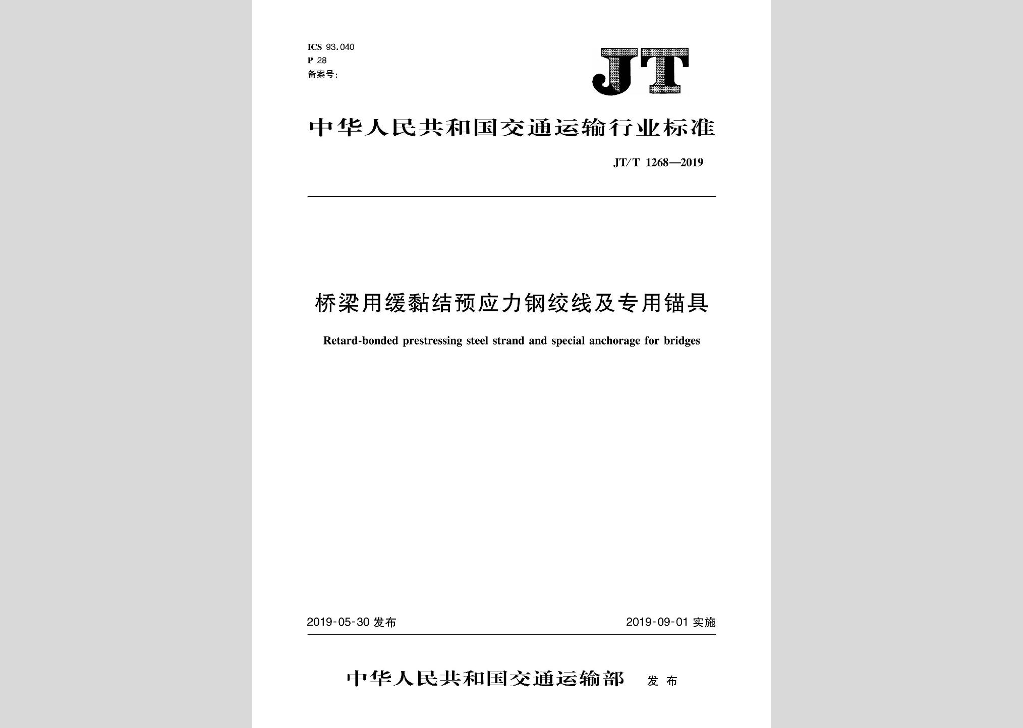 JT/T1268-2019:桥梁用缓黏结预应力钢绞线及专用锚具现行