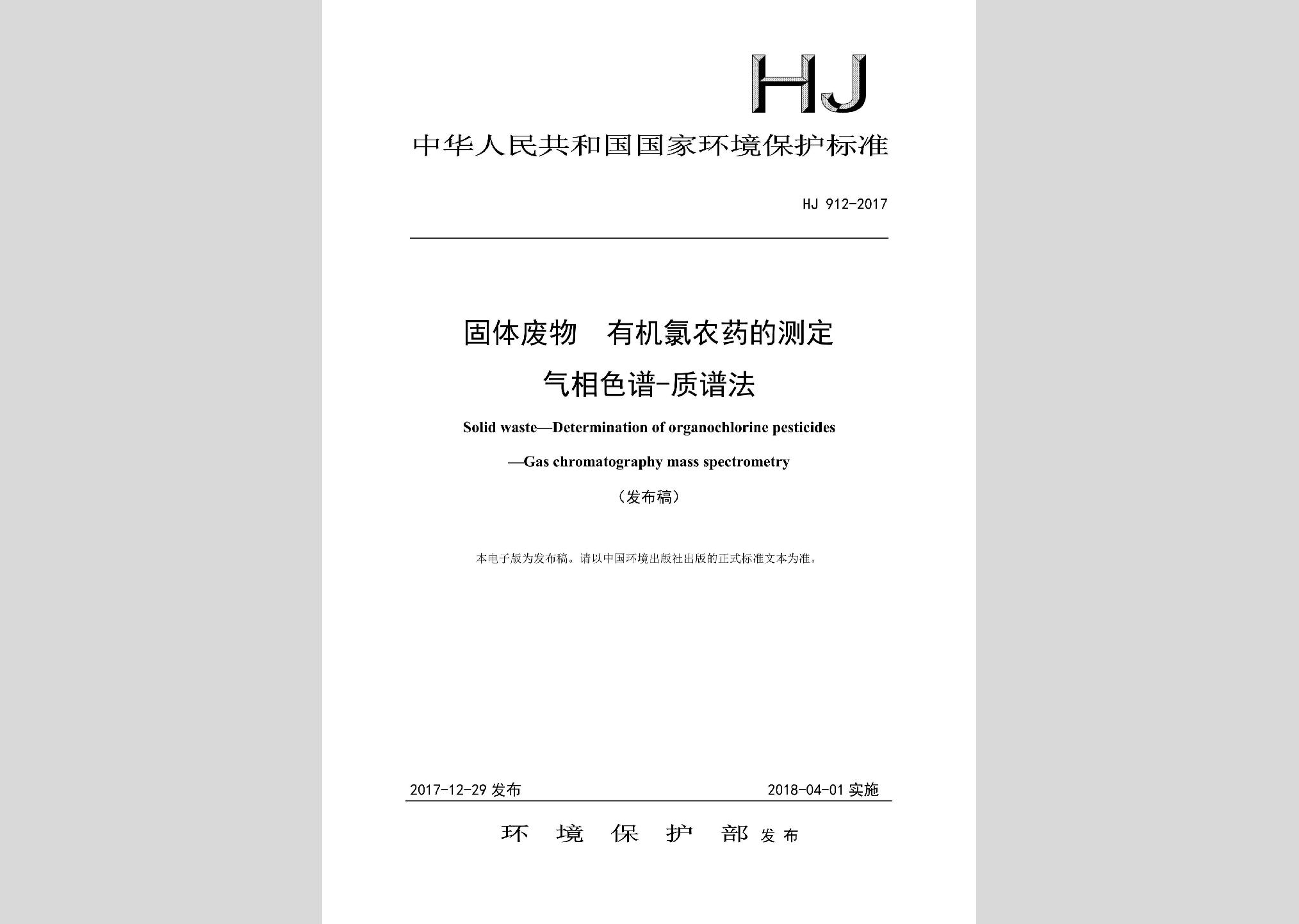 HJ912-2017:固体废物有机氯农药的测定气相色谱-质谱法现行