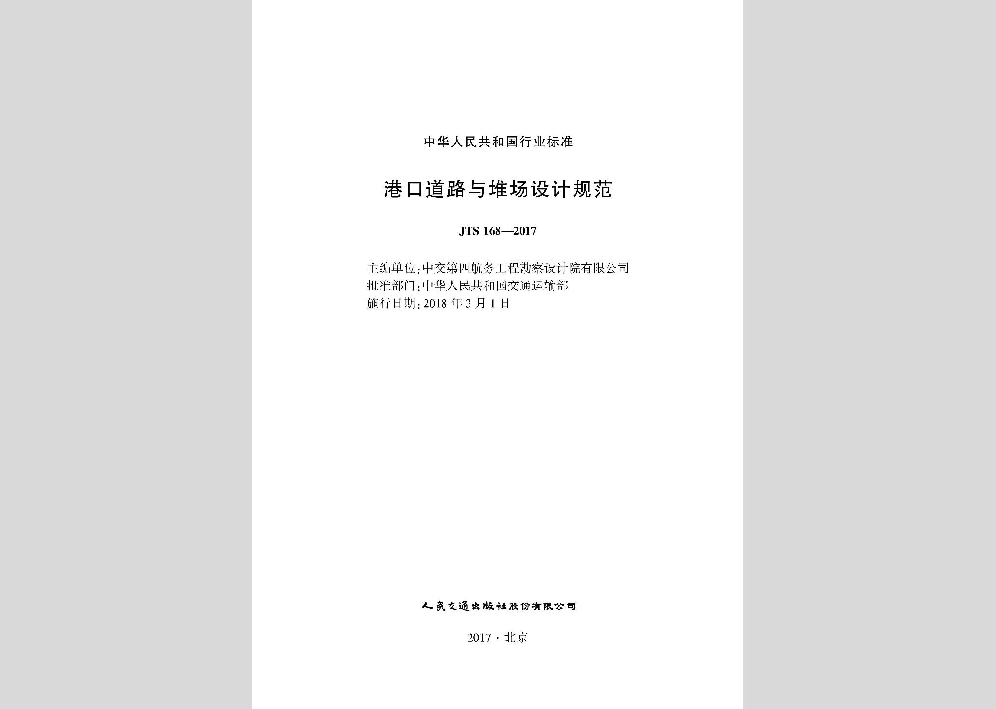 JTS168-2017:港口道路与堆场设计规范现行
