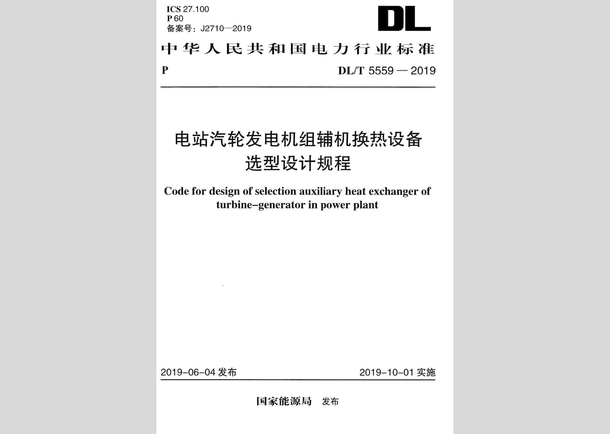 DL/T5559-2019:电站汽轮发电机组辅机换热设备选型设计规程现行
