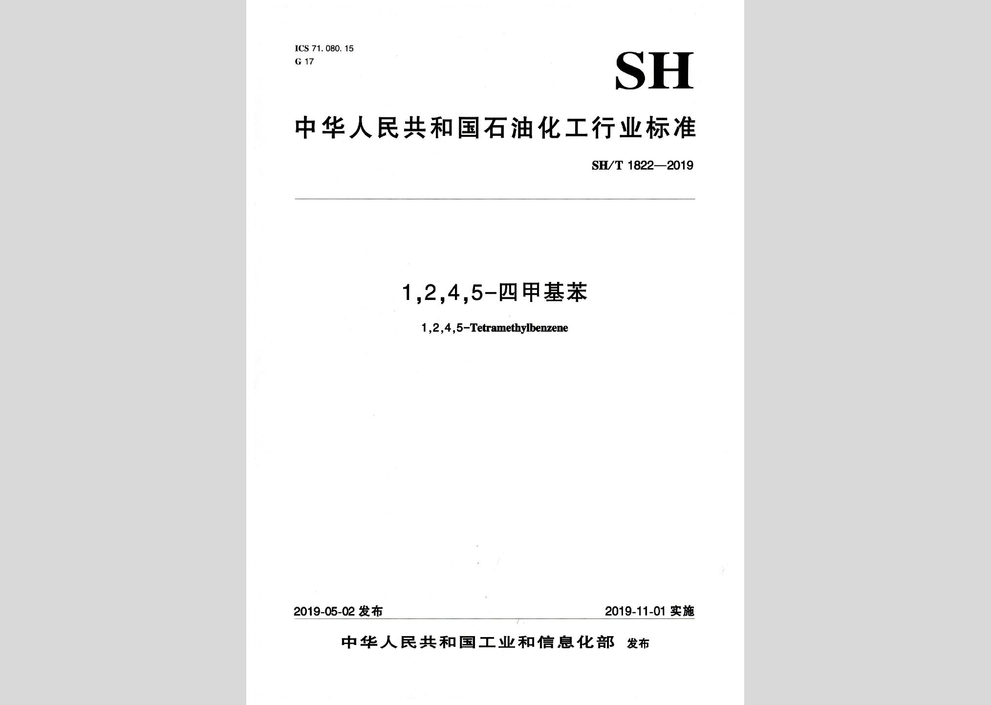 SH/T1822-2019:1,2,4,5-四甲基苯现行