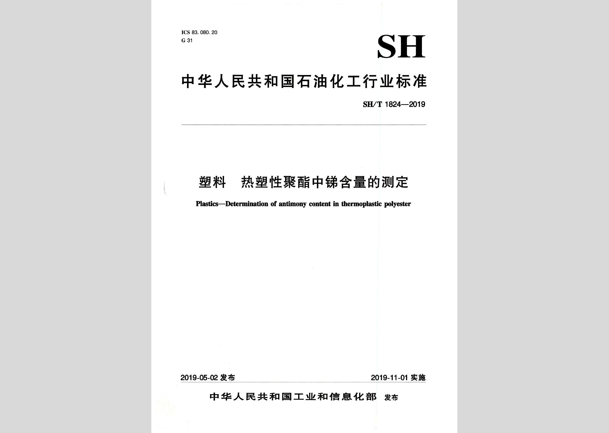 SH/T1824-2019:塑料热塑性聚酯是锑含量的测定现行
