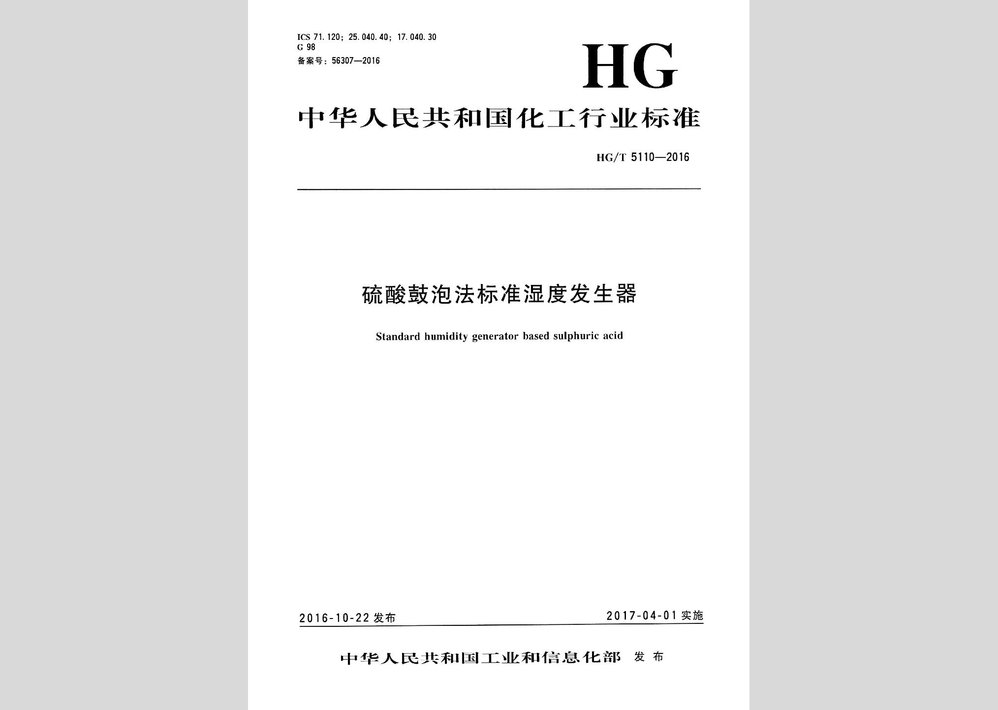 HG/T5110-2016:硫酸鼓泡法标准湿度发生器现行