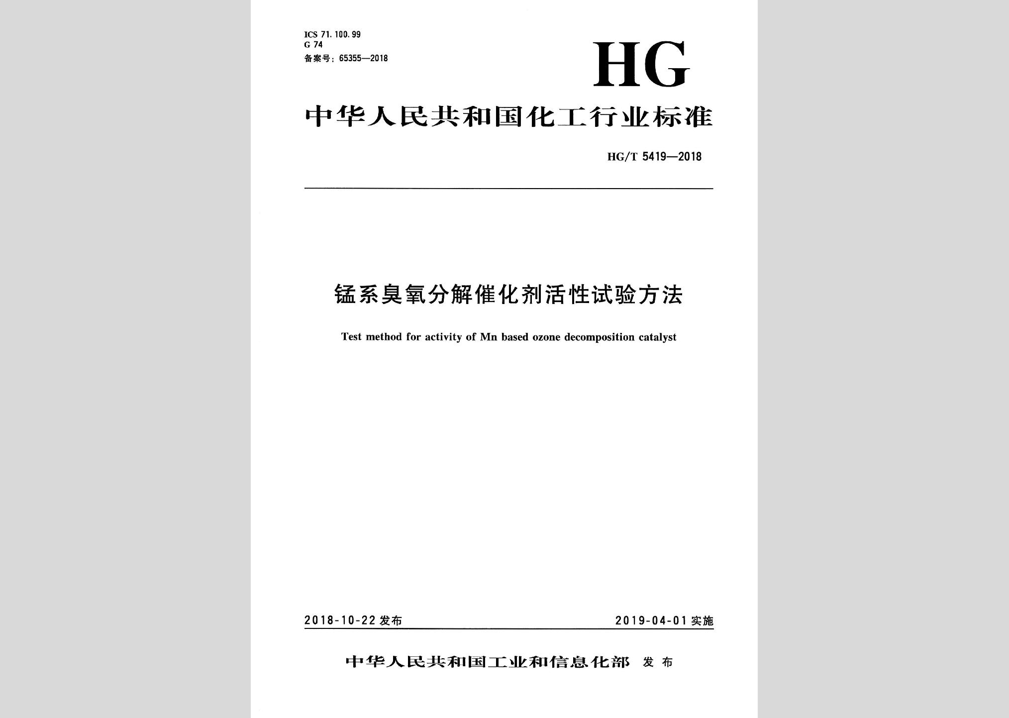 HG/T5419-2018:锰系臭氧分解催化剂活性试验方法现行