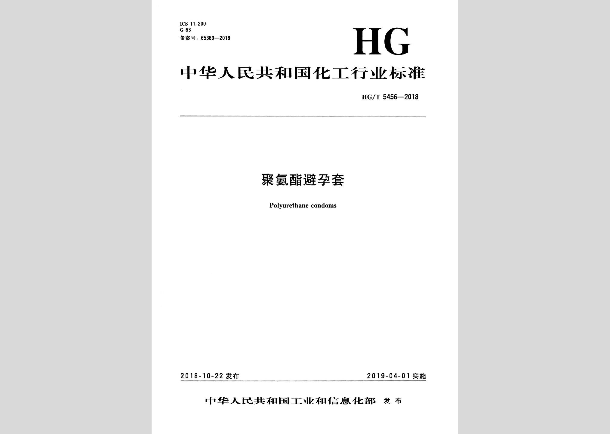 HG/T5456-2018:聚氨酯避孕套现行