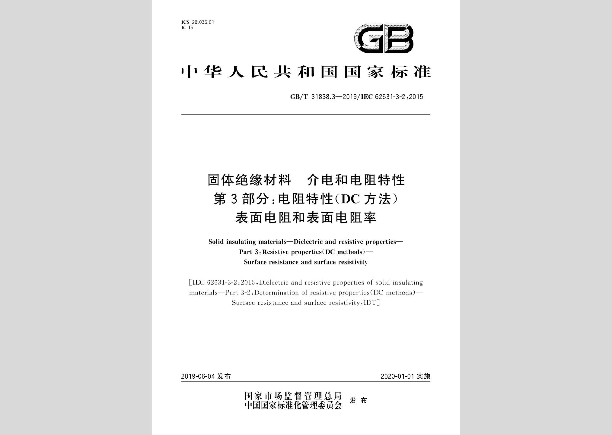 GB/T31838.3-2019:固体绝缘材料介电和电阻特性第3部分:电阻特性(DC方法)表面电阻和表面电阻率现行