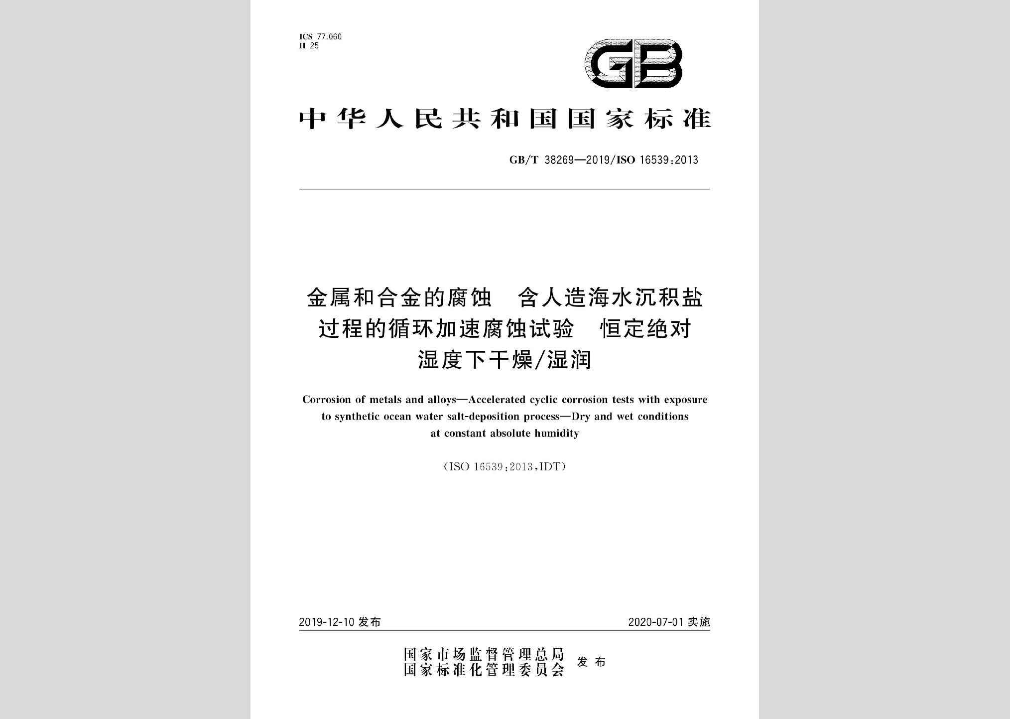 GB/T38269-2019:金属和合金的腐蚀含人造海水沉积盐过程的循环加速腐蚀试验恒定绝对湿度下干燥/湿润现行