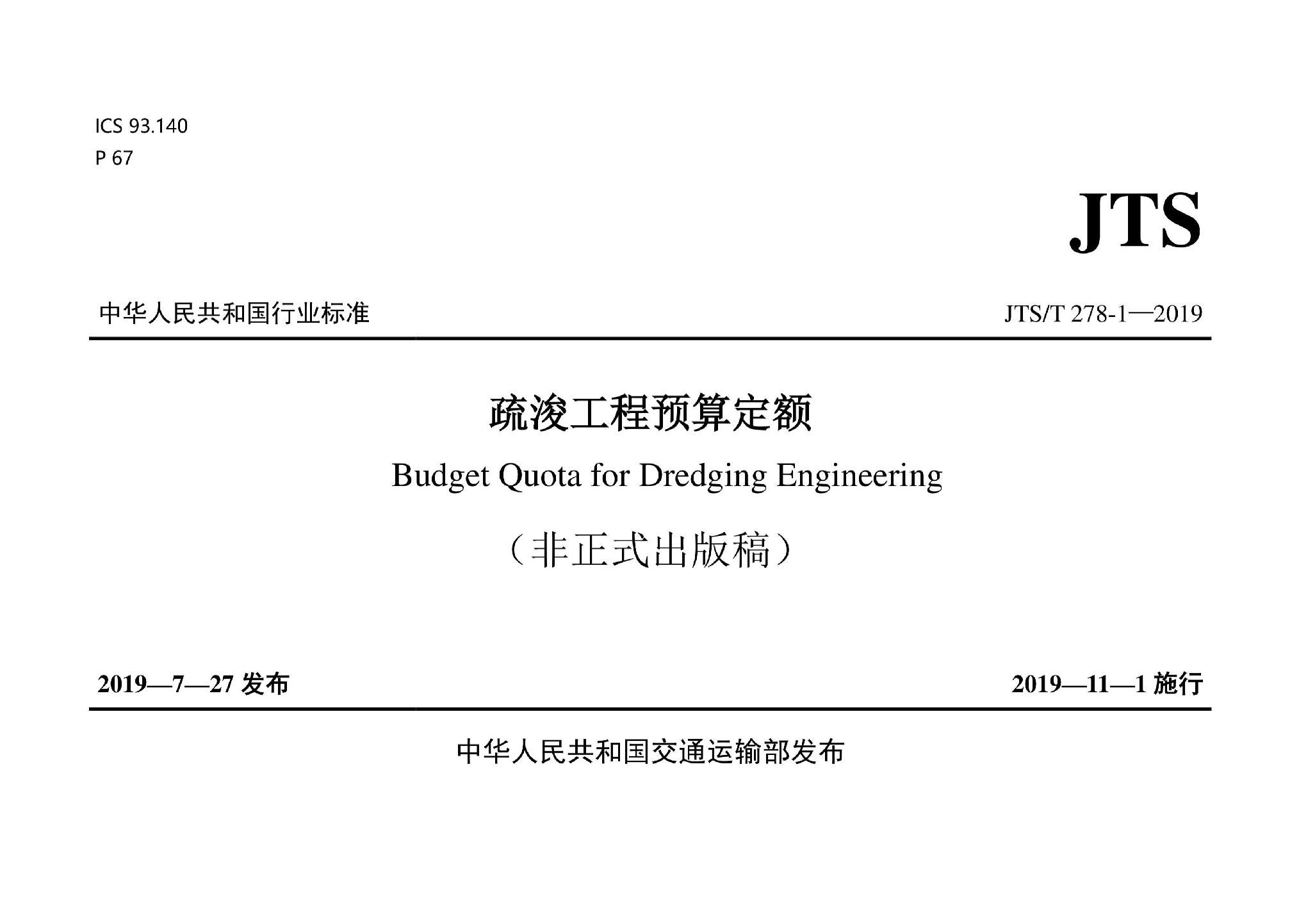 JTS/T278-1-2019:疏浚工程预算定额现行