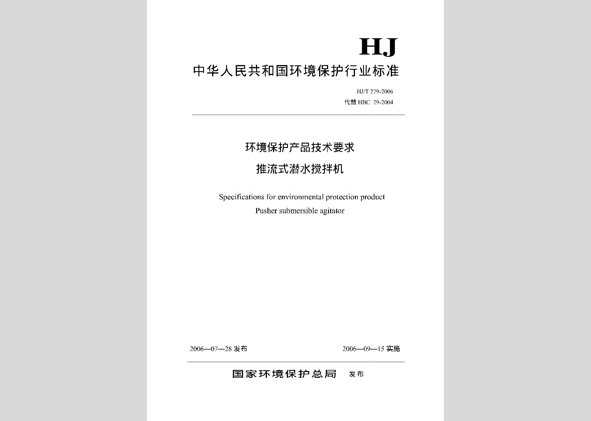 HJ/T279-2006:环境保护产品技术要求推流式潜水搅拌机现行