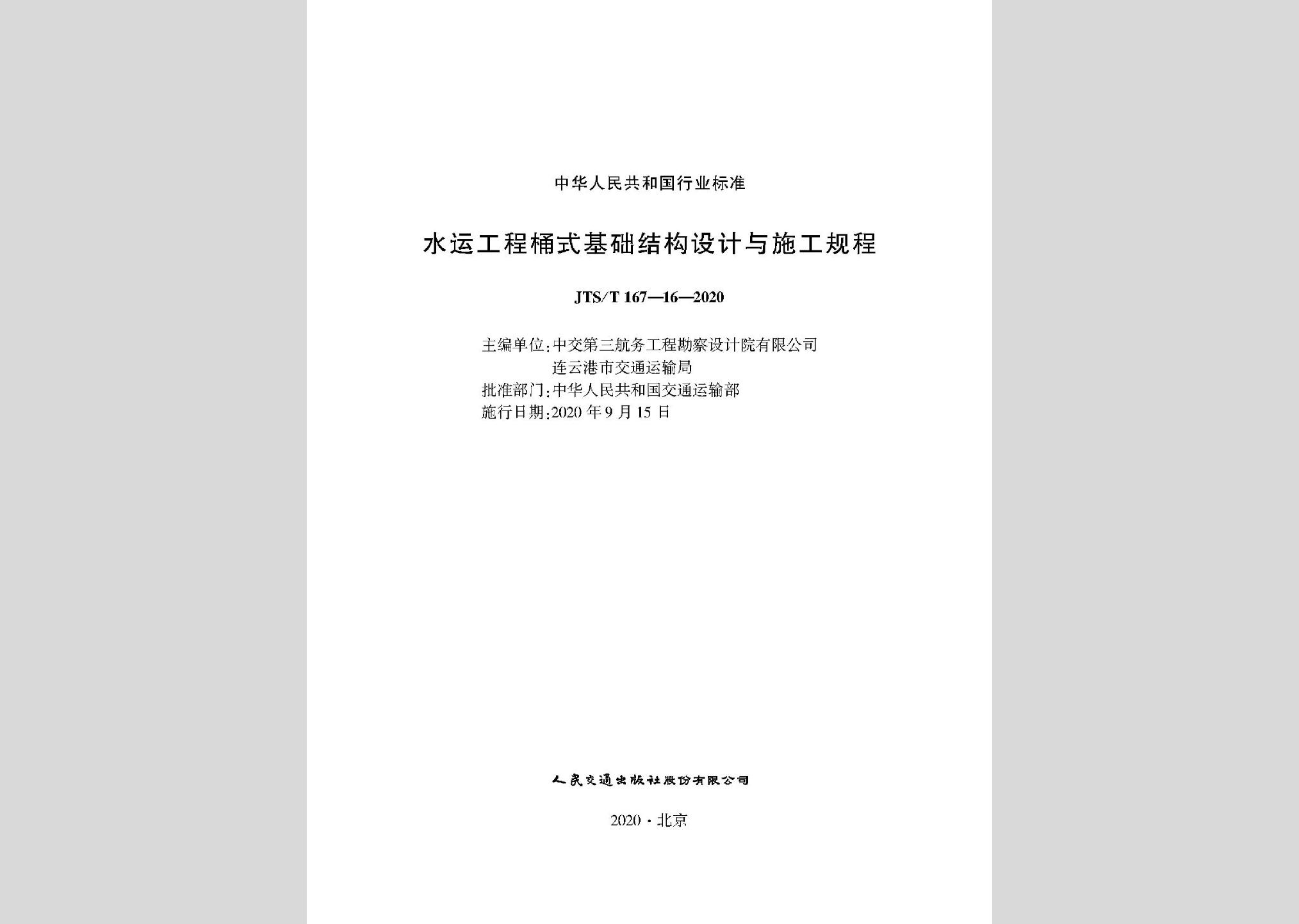 JTS/T167-16-2020:水运工程桶式基础结构设计与施工规程现行