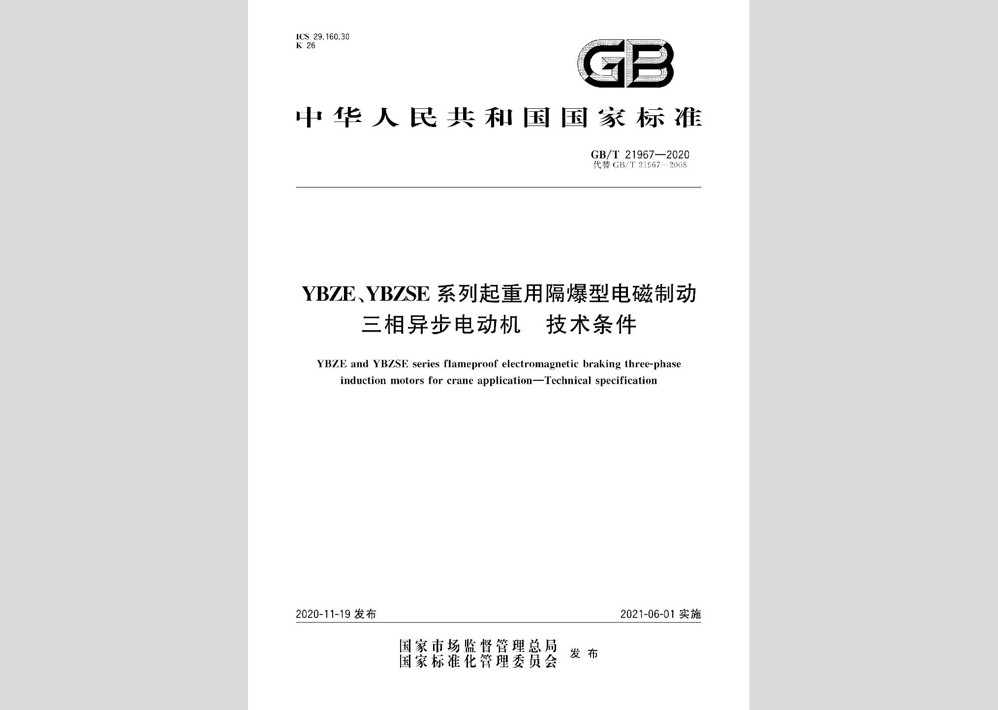 GB/T21967-2020:YBZE、YBZSE系列起重用隔爆型电磁制动三相异步电动机技术条件现行