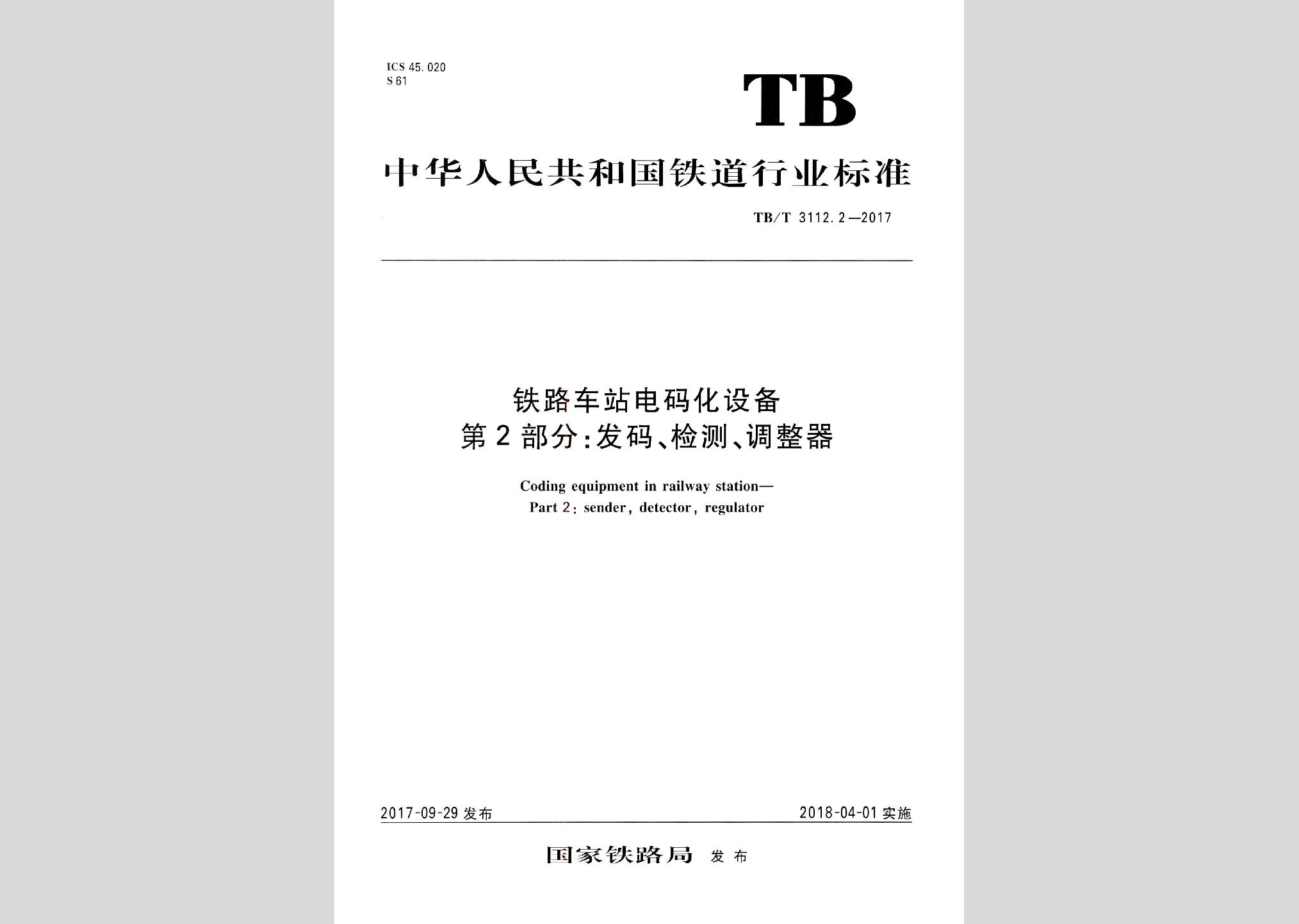 TB/T3112.2-2017:铁路车站电码化设备第2部分:发码、检测、调整器现行