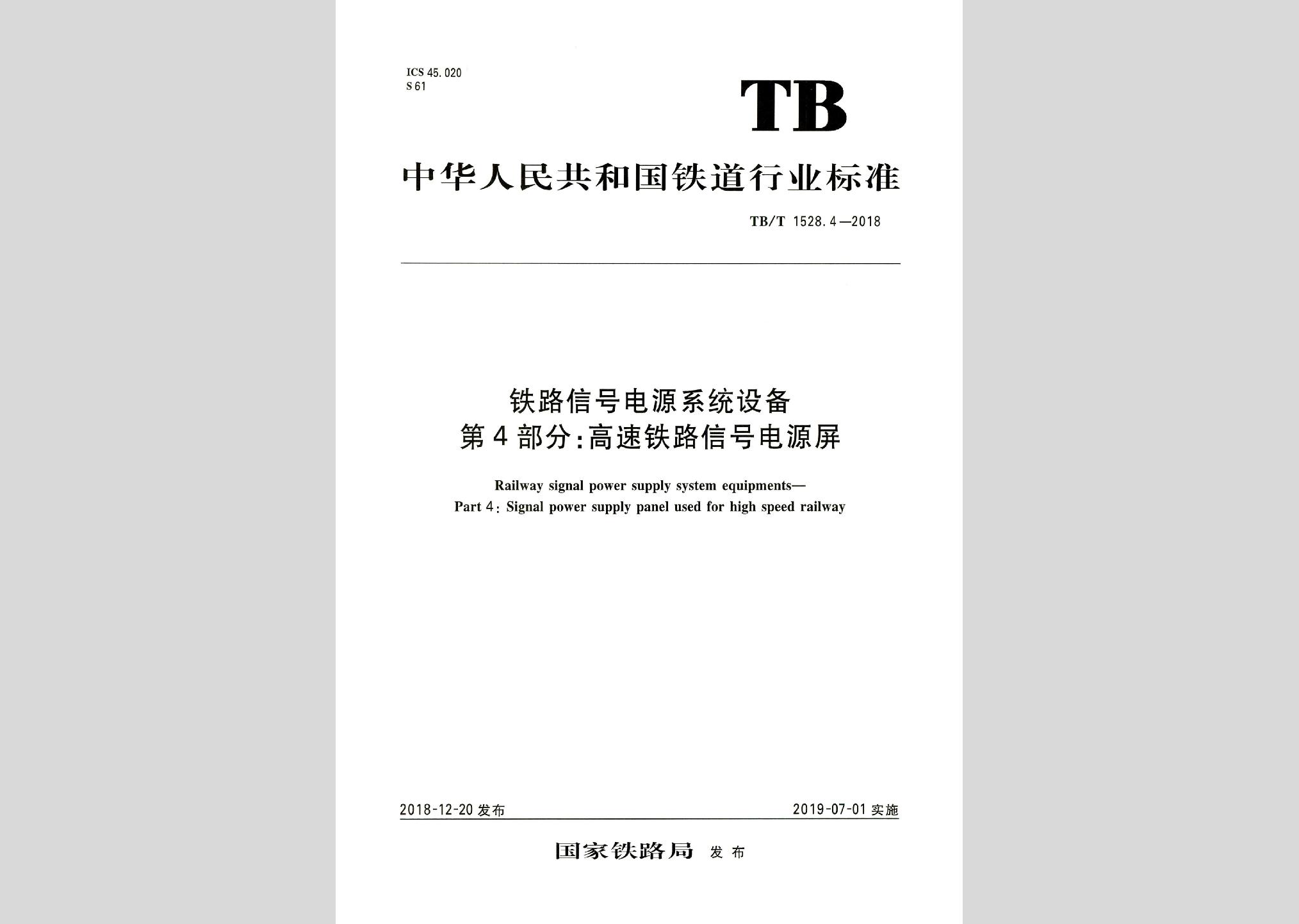 TB/T1528.4-2018:铁路信号电源系统设备第4部分:高速铁路信号电源屏现行