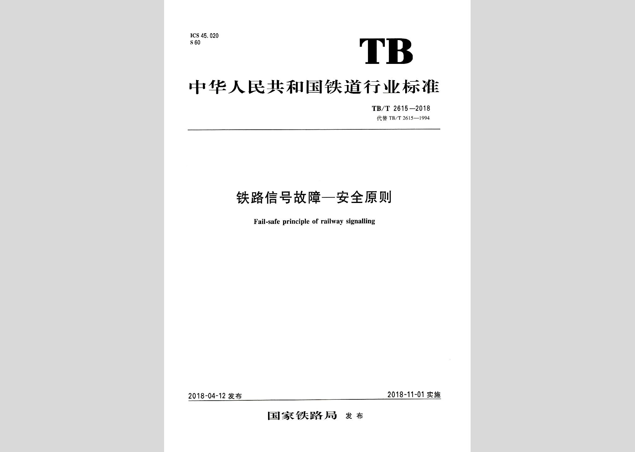 TB/T2615-2018:铁路信号故障-安全准则现行