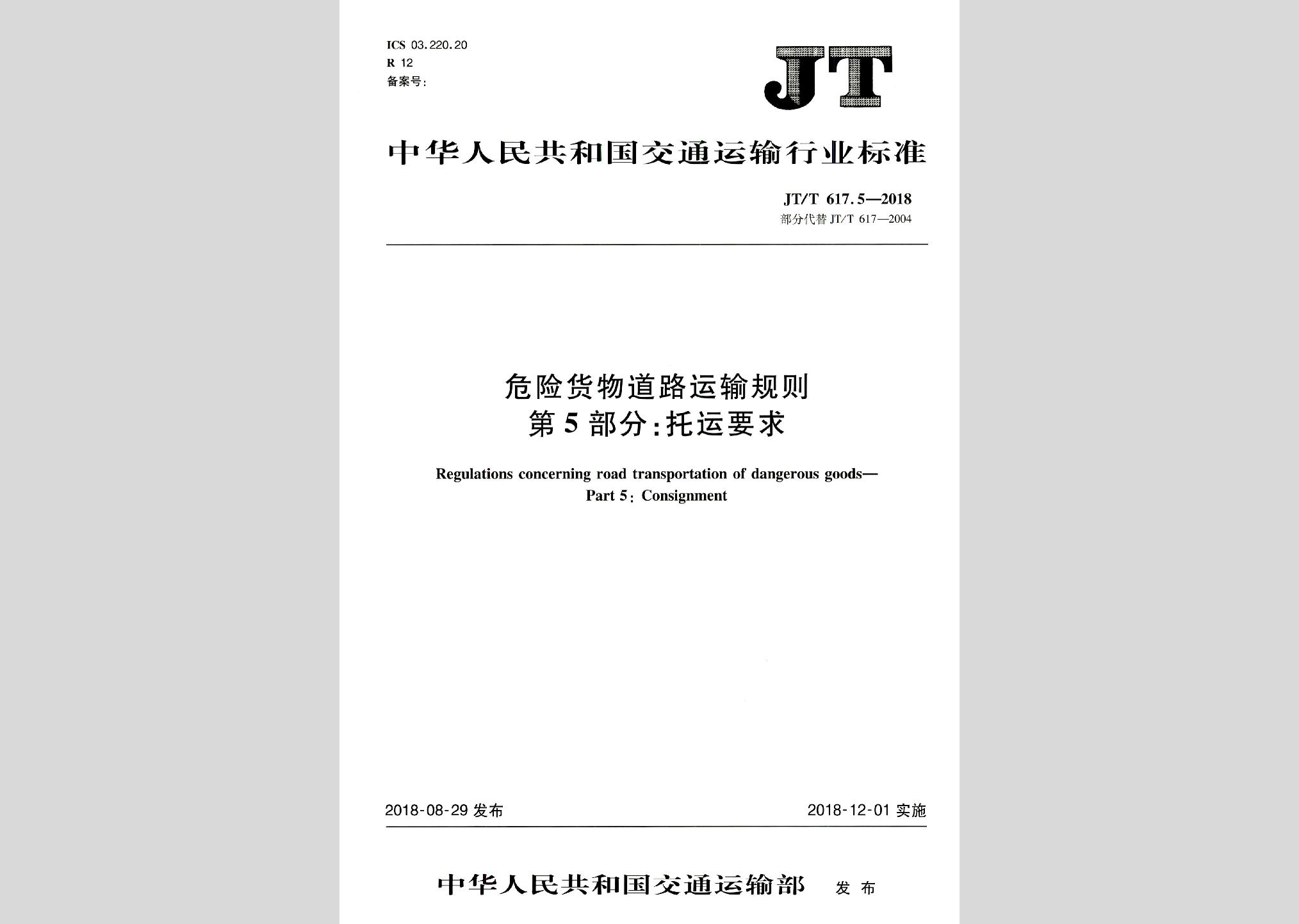 JT/T617.5-2018:危险货物道路运输规则第5部分:托运要求现行