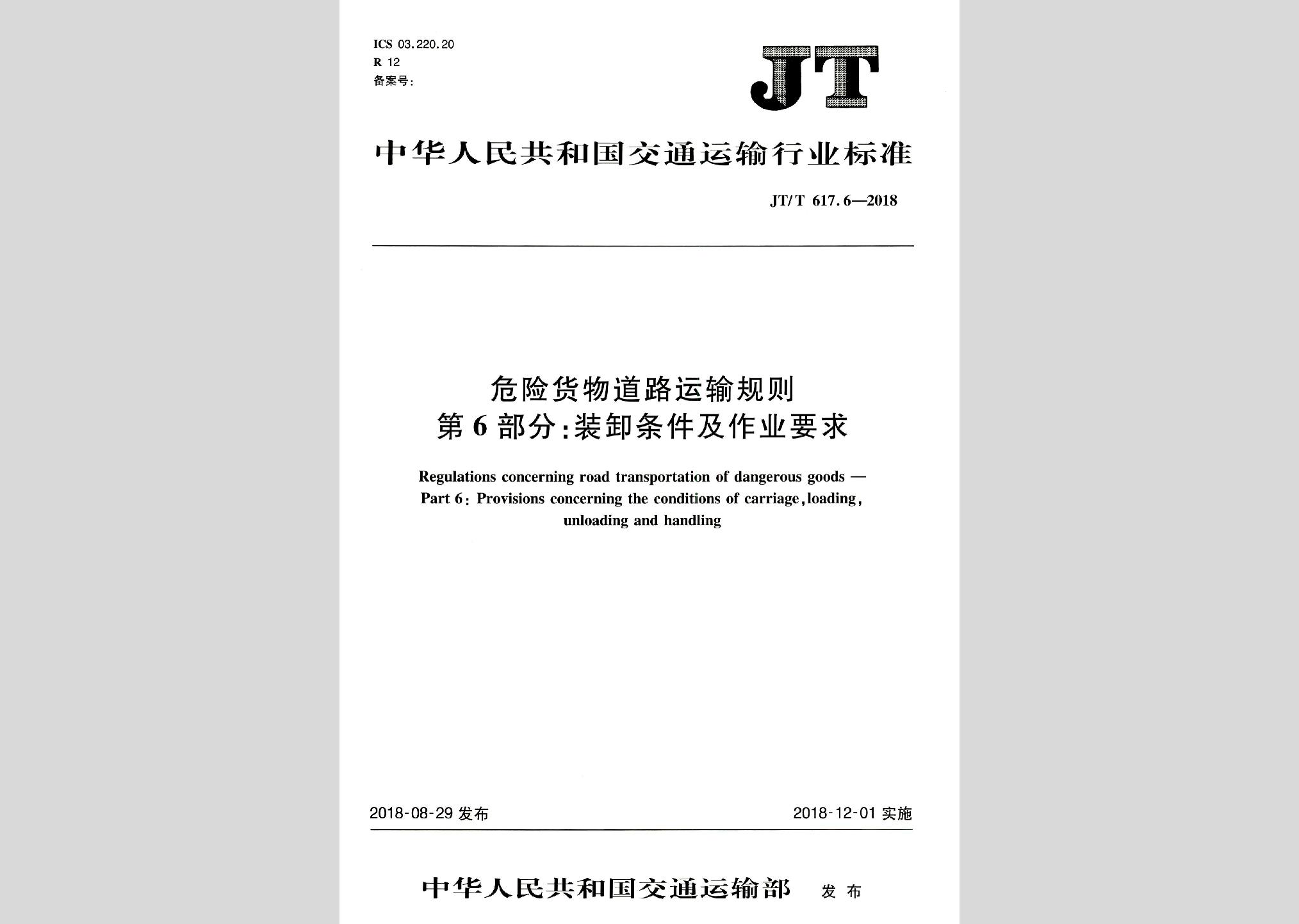 JT/T617.6-2018:危险货物道路运输规则第6部分:装卸条件及作业要求现行