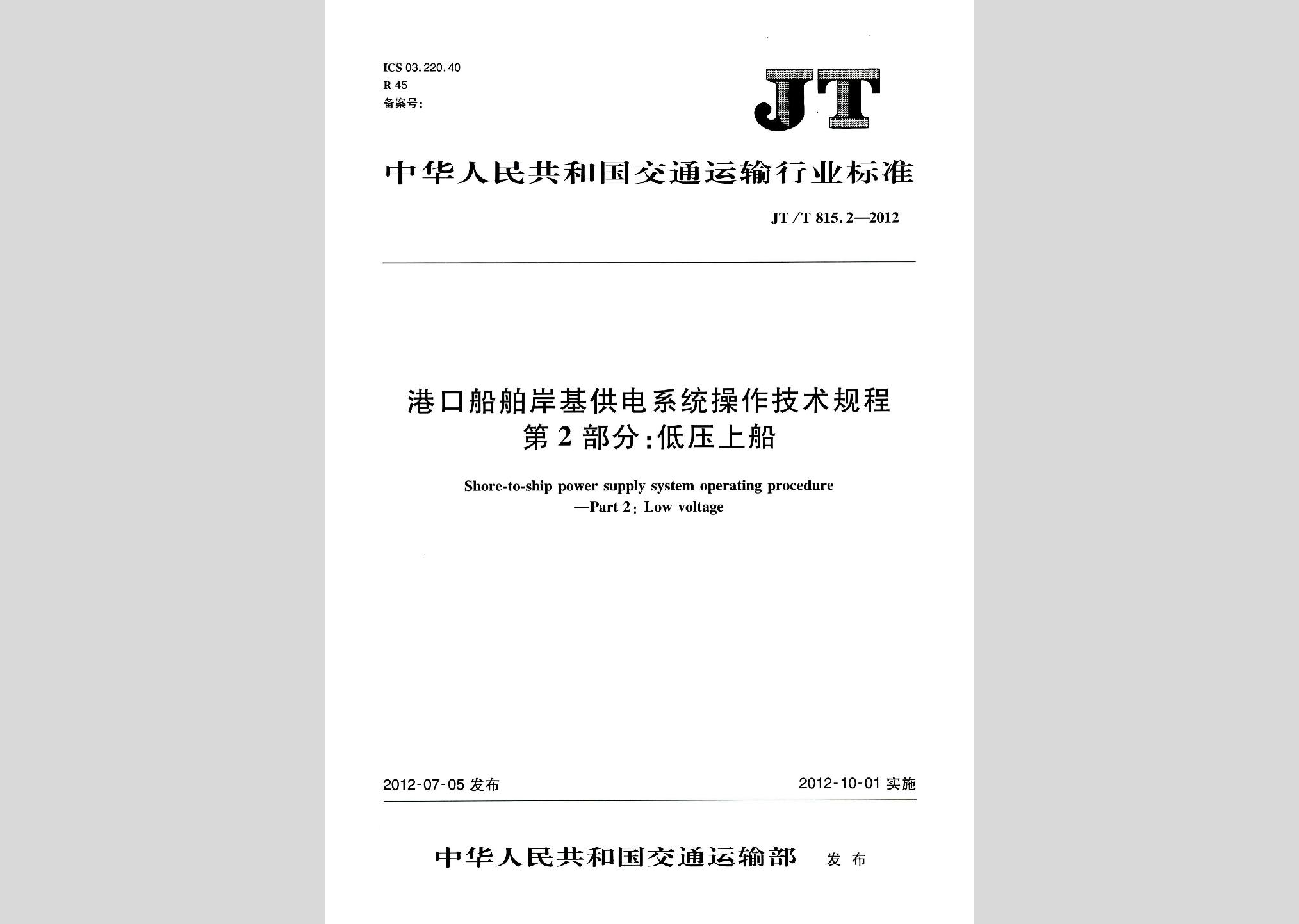 JT/T815.2-2012:港口船舶岸基供电系统操作技术规程第2部分:低压上船废止