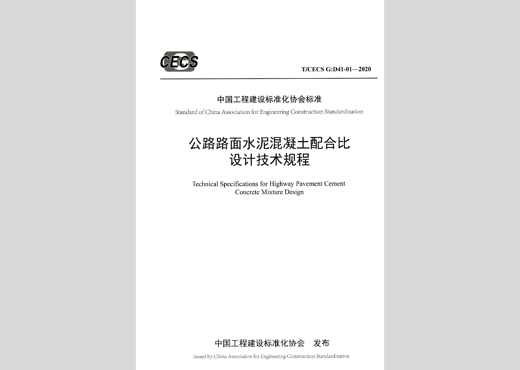 T/CECSG:D41-01-2020:公路路面水泥混凝土配合比设计技术规程现行