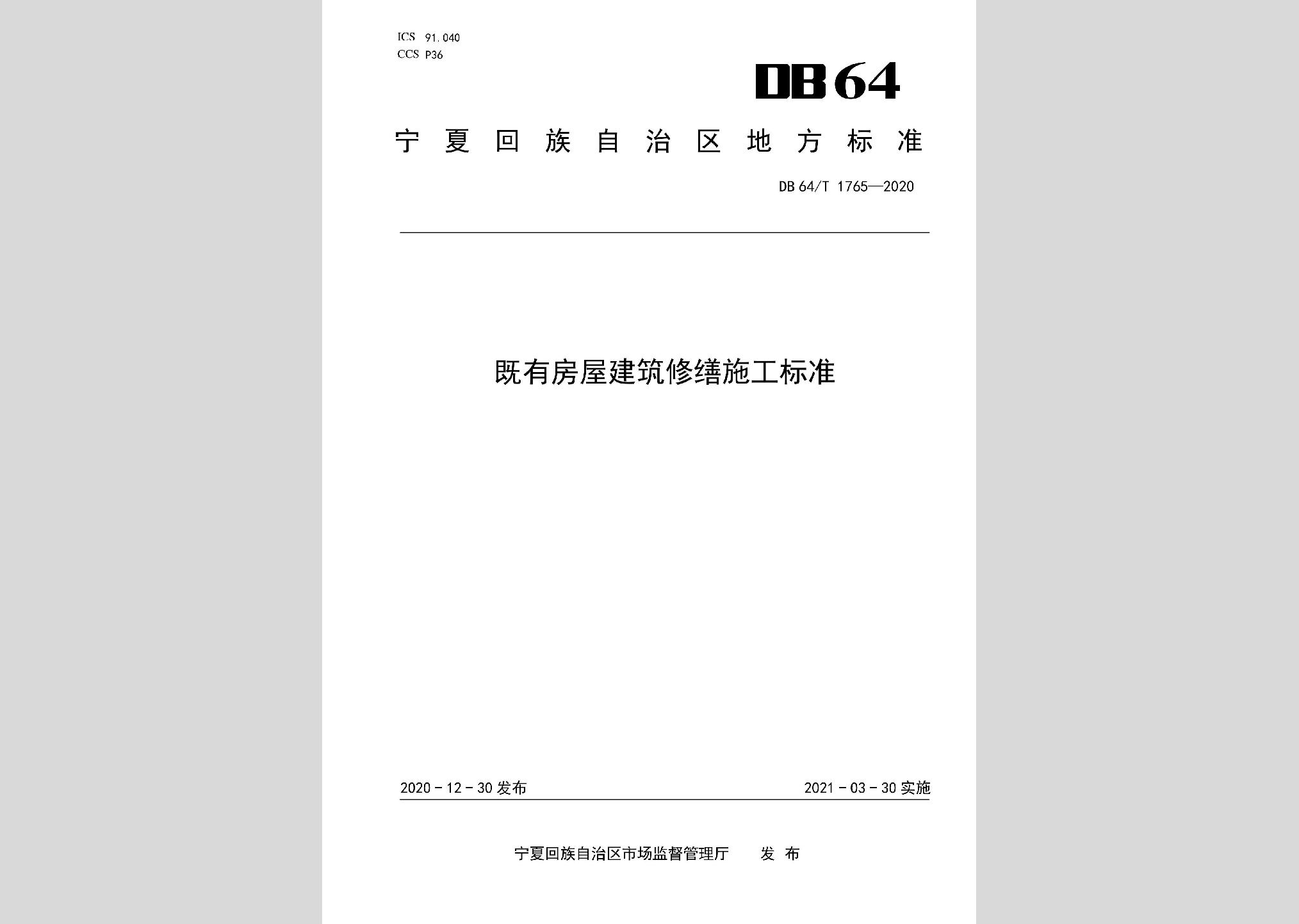 DB64/T1765-2020:既有房屋建筑修缮施工标准现行