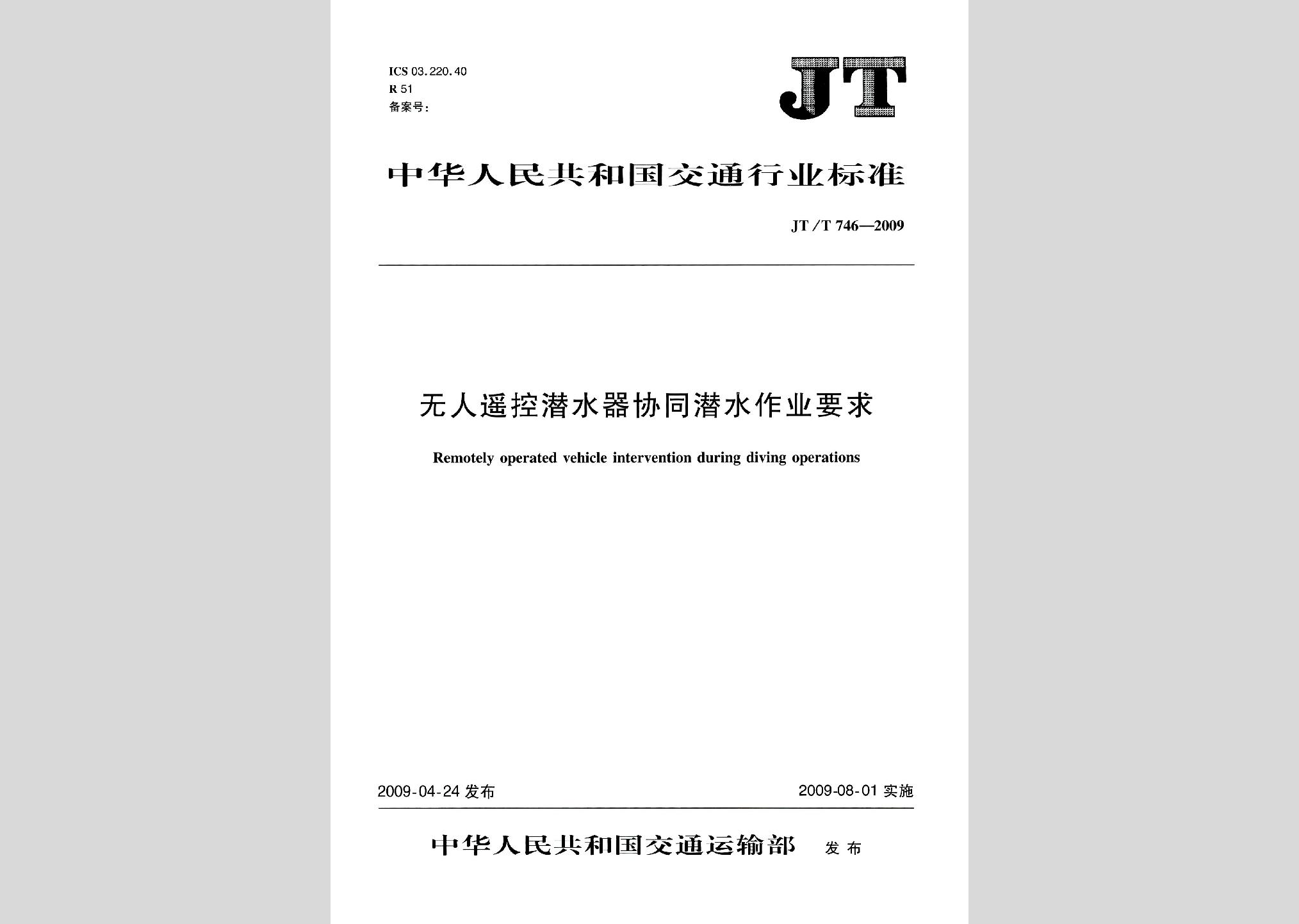 JT/T746-2009:无人遥控潜水器协同潜水作业要求现行