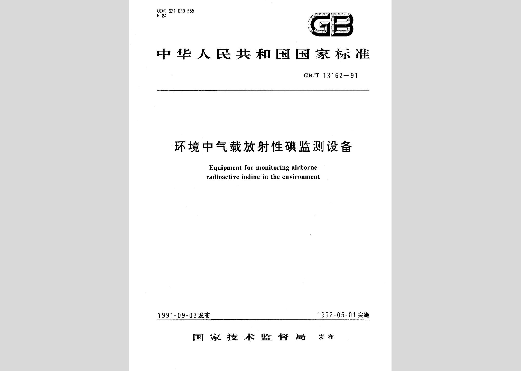 GB/T13162-1991:环境中气载放射性碘监测设备现行
