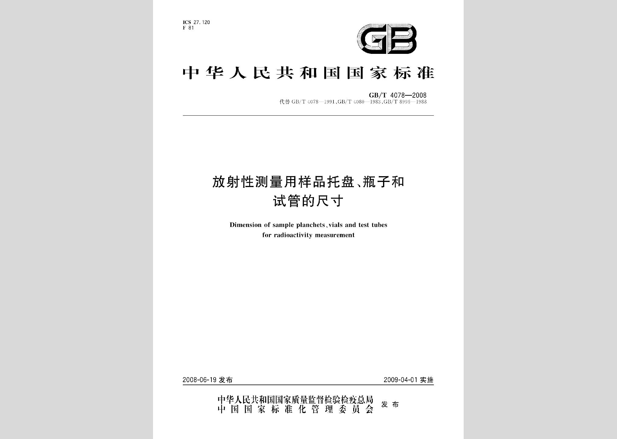 GB/T4078-2008:放射性测量用样品托盘、瓶子和试管的尺寸现行