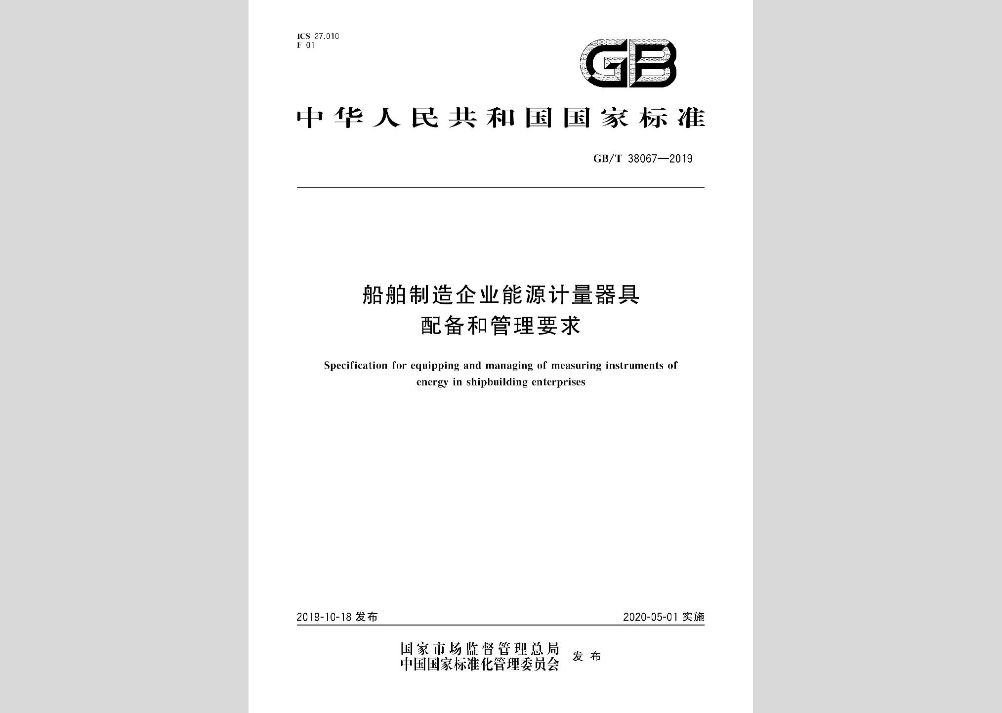 GB/T38067-2019:船舶制造企业能源计量器具配备和管理要求现行