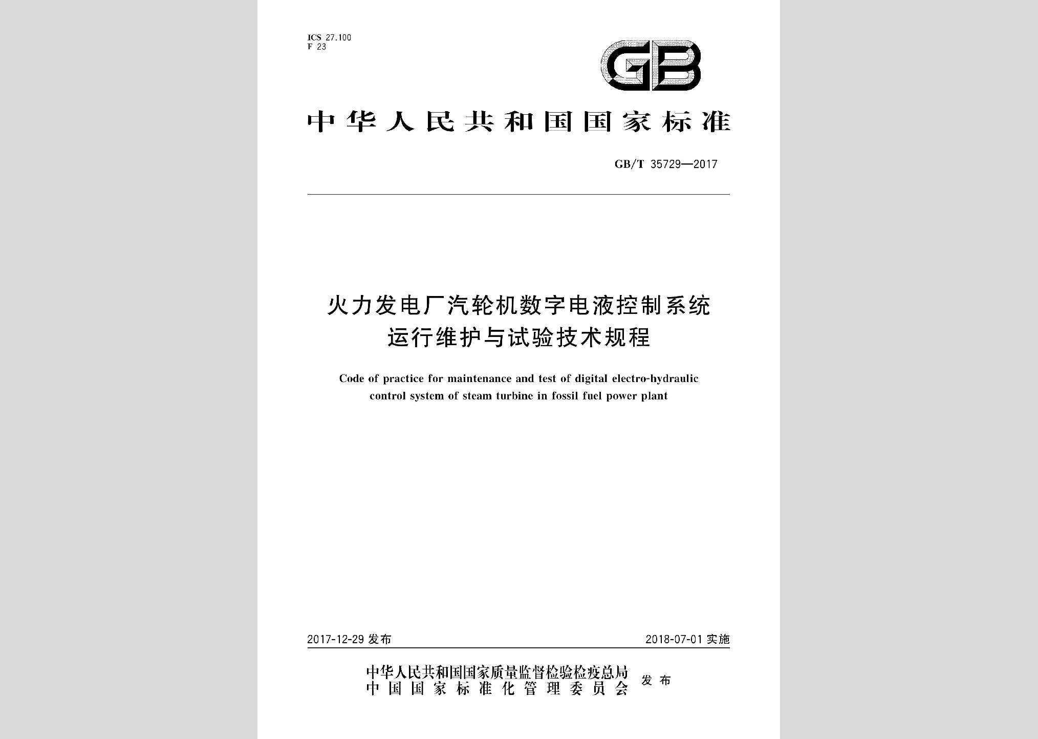 GB/T35729-2017:火力发电厂汽轮机数字电液控制系统运行维护与试验技术规程现行
