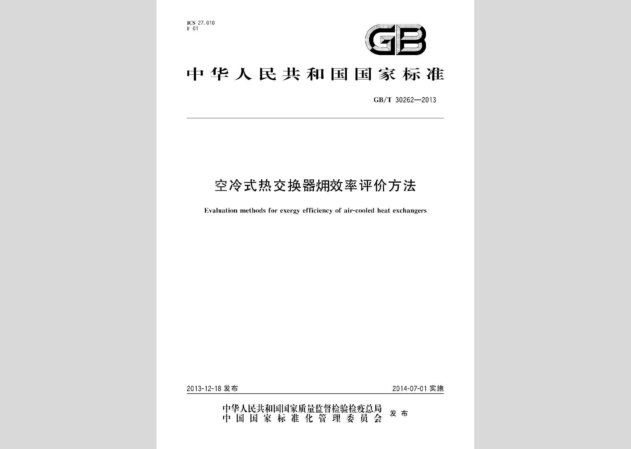GB/T30262-2013:空冷式热交换器㶲效率评价方法现行