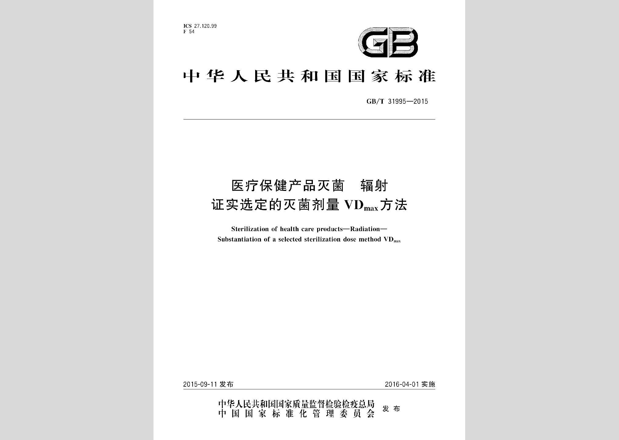 GB/T31995-2015:医疗保健产品灭菌辐射证实选定的灭菌剂量VDmax方法现行