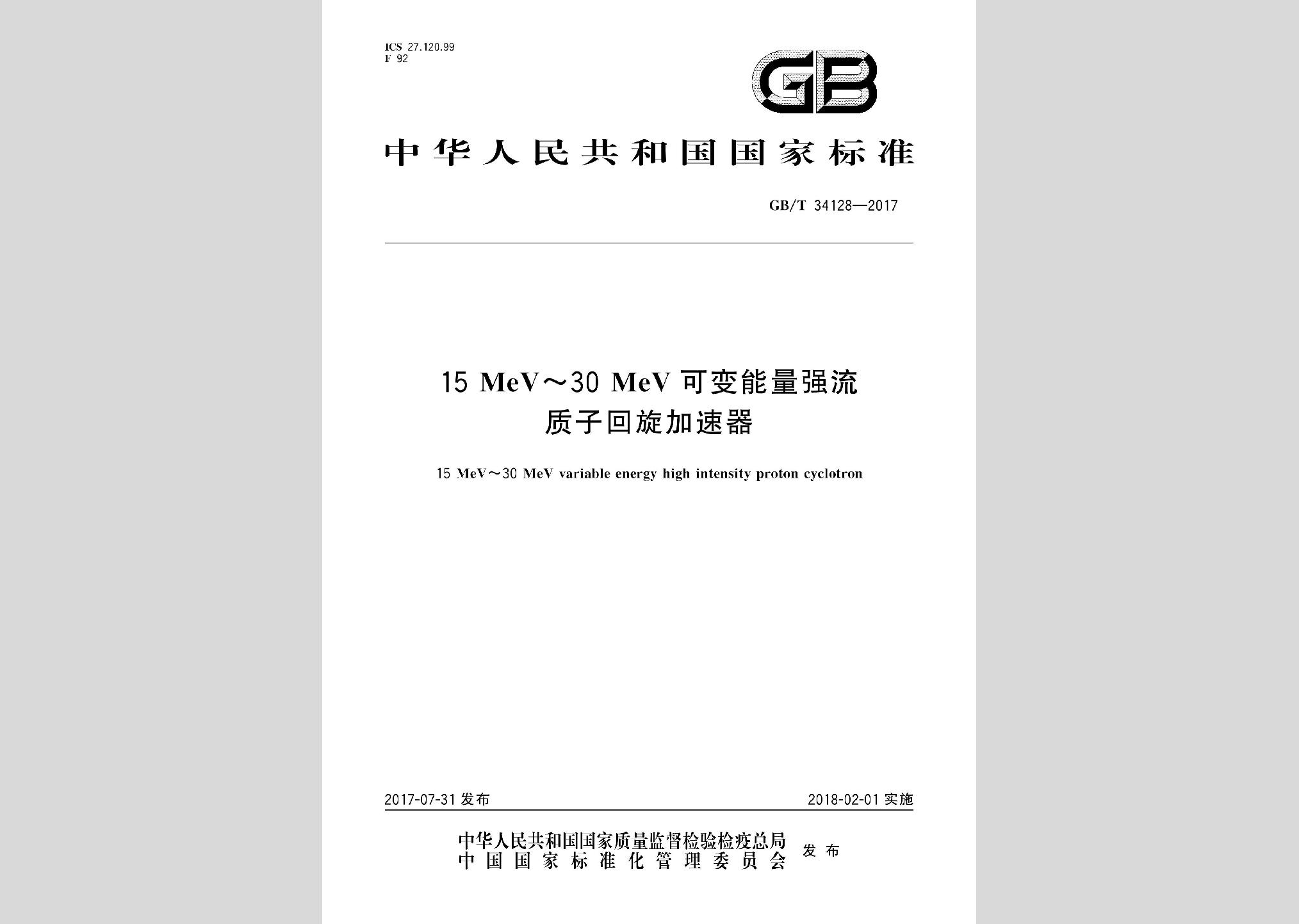 GB/T34128-2017:15MeV~30MeV可变能量强流质子回旋加速器现行