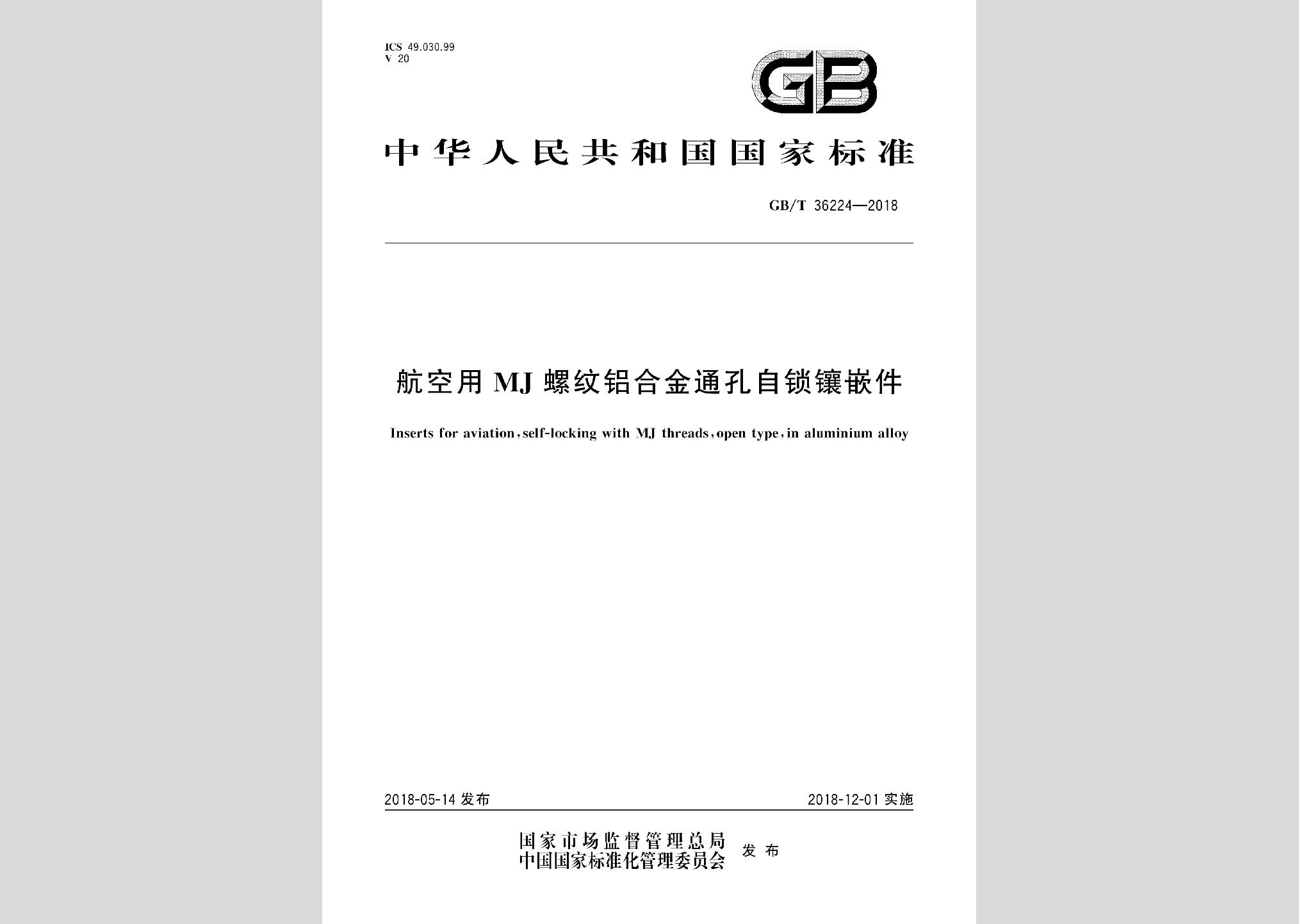 GB/T36224-2018:航空用MJ螺纹铝合金通孔自锁镶嵌件现行