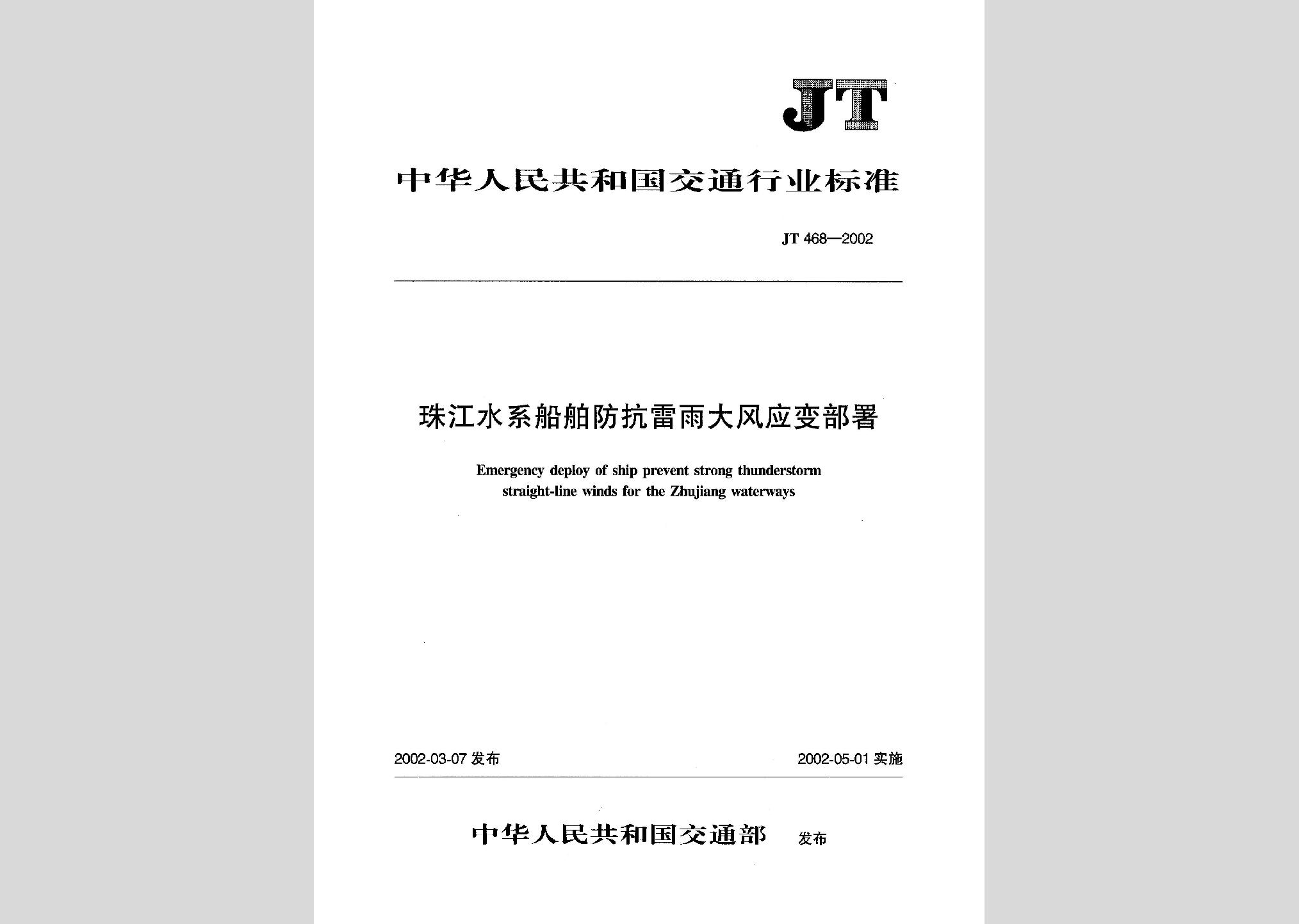 JT468-2002:珠江水系船舶防抗雷雨大风应变部署现行