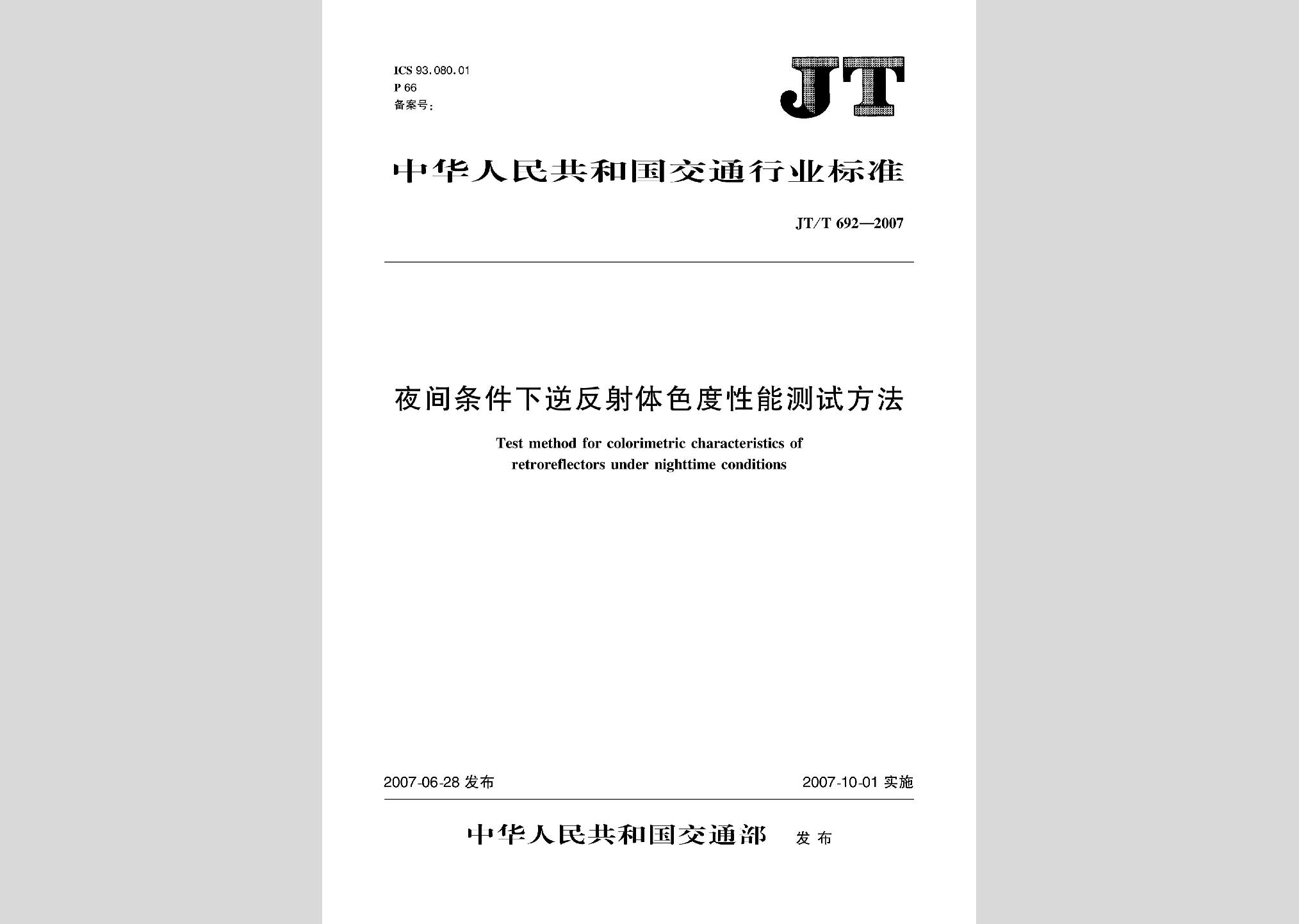 JT/T692-2007:夜间条件下逆反射体色度性能测试方法废止