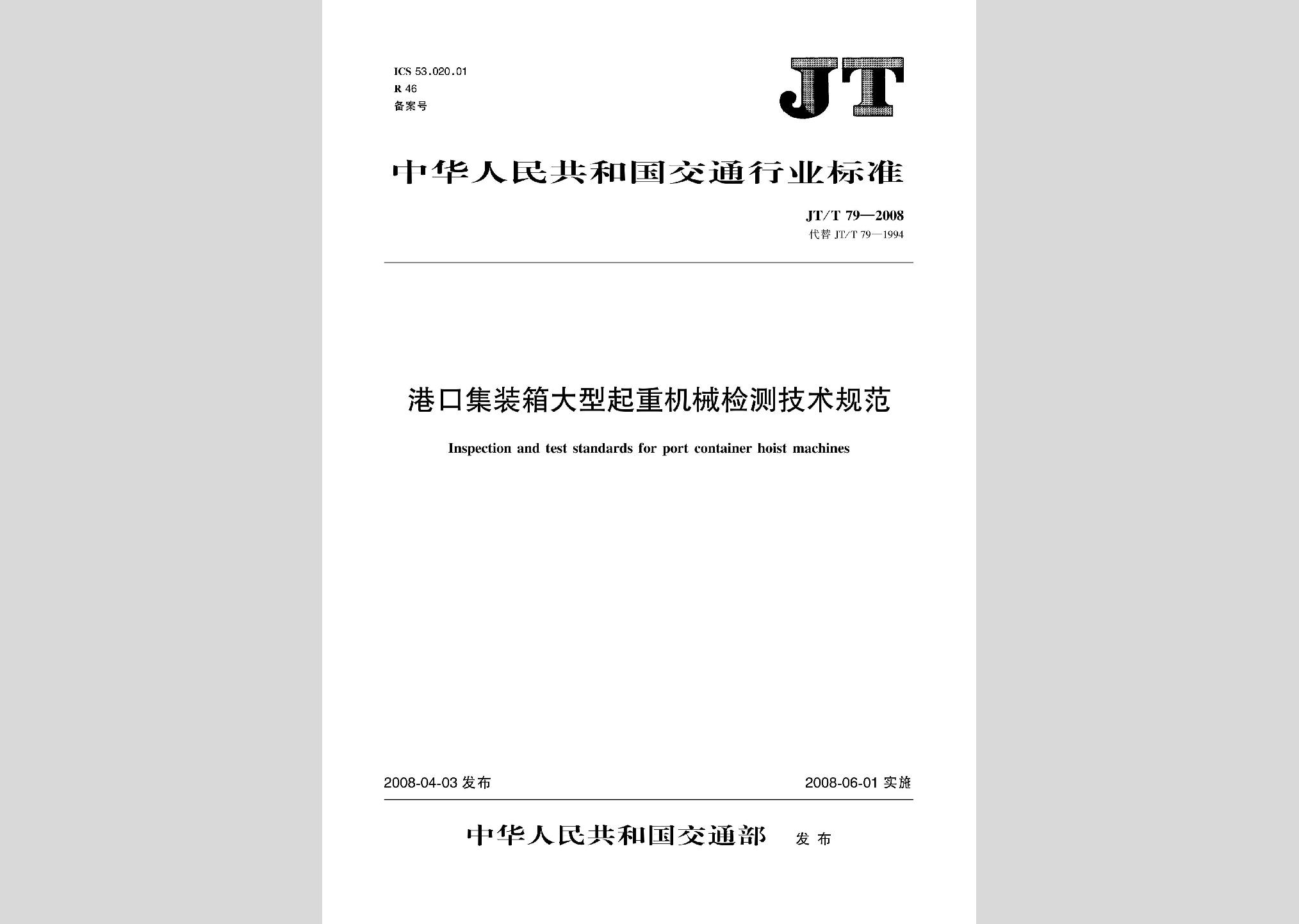 JT/T79-2008:港口集装箱大型起重机械检测技术规范现行