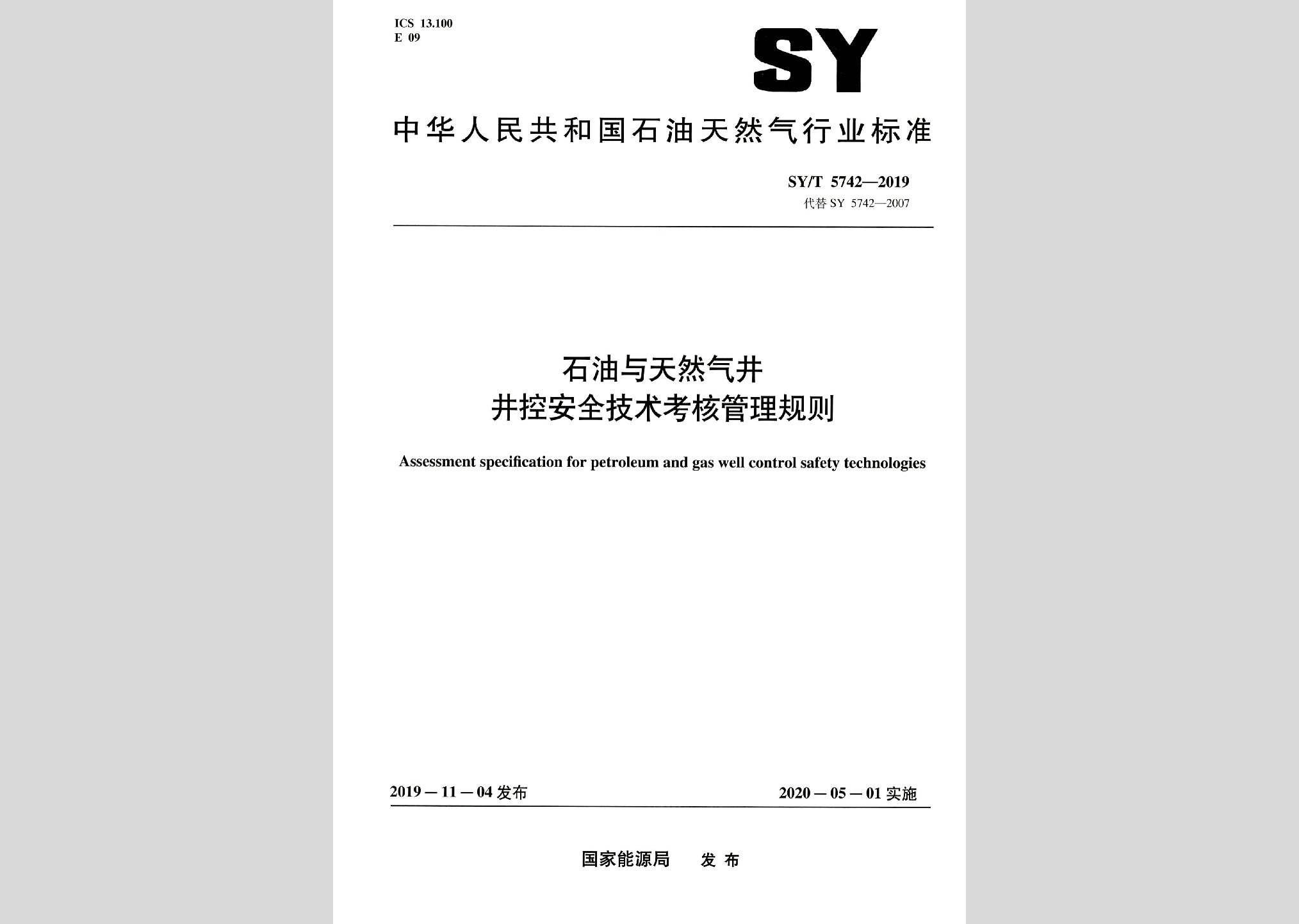 SY/T5742-2019:石油与天然气井井控安全技术考核管理规则现行