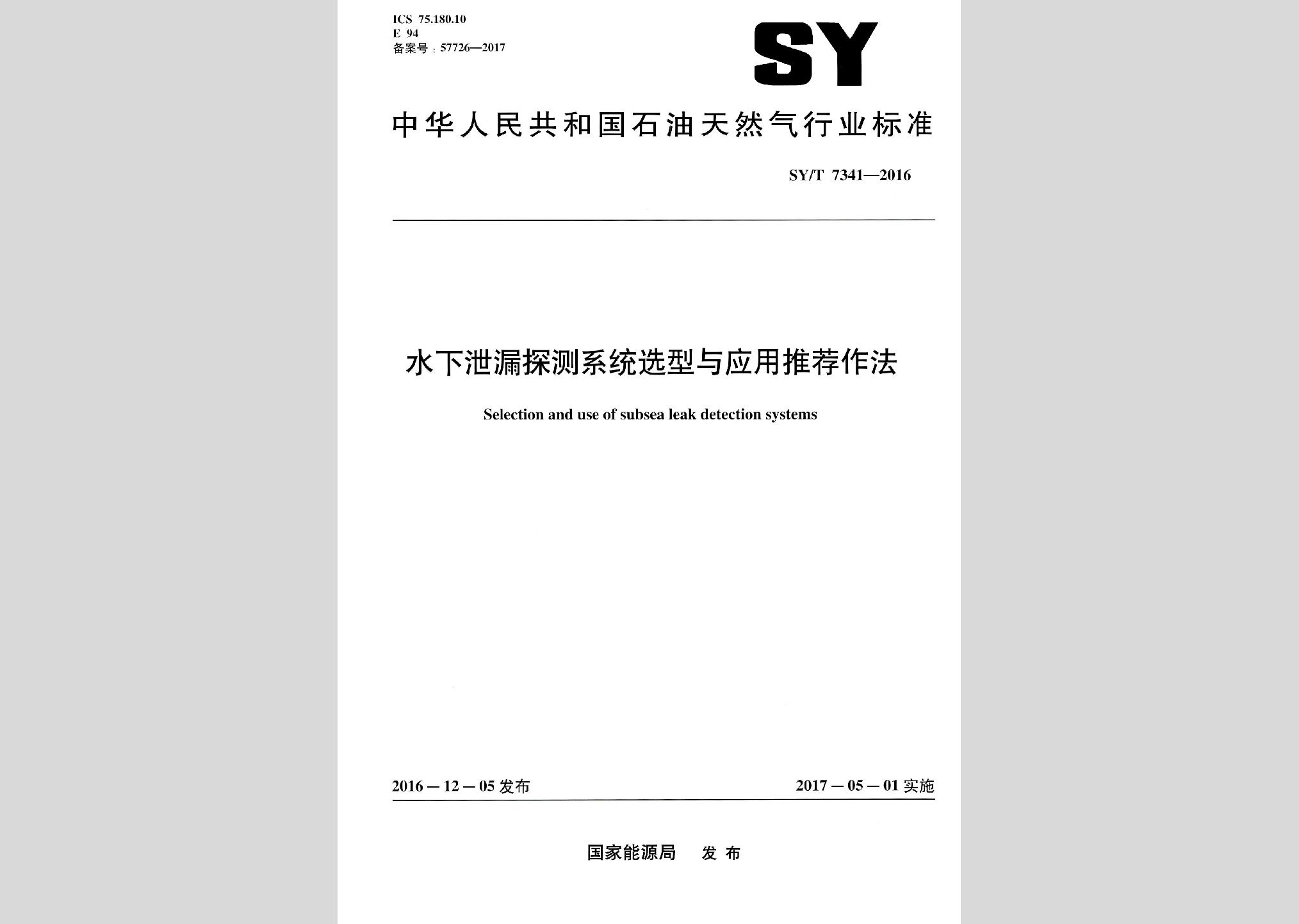 SY/T7341-2016:水下泄漏探测系统选型与应用推荐作法现行