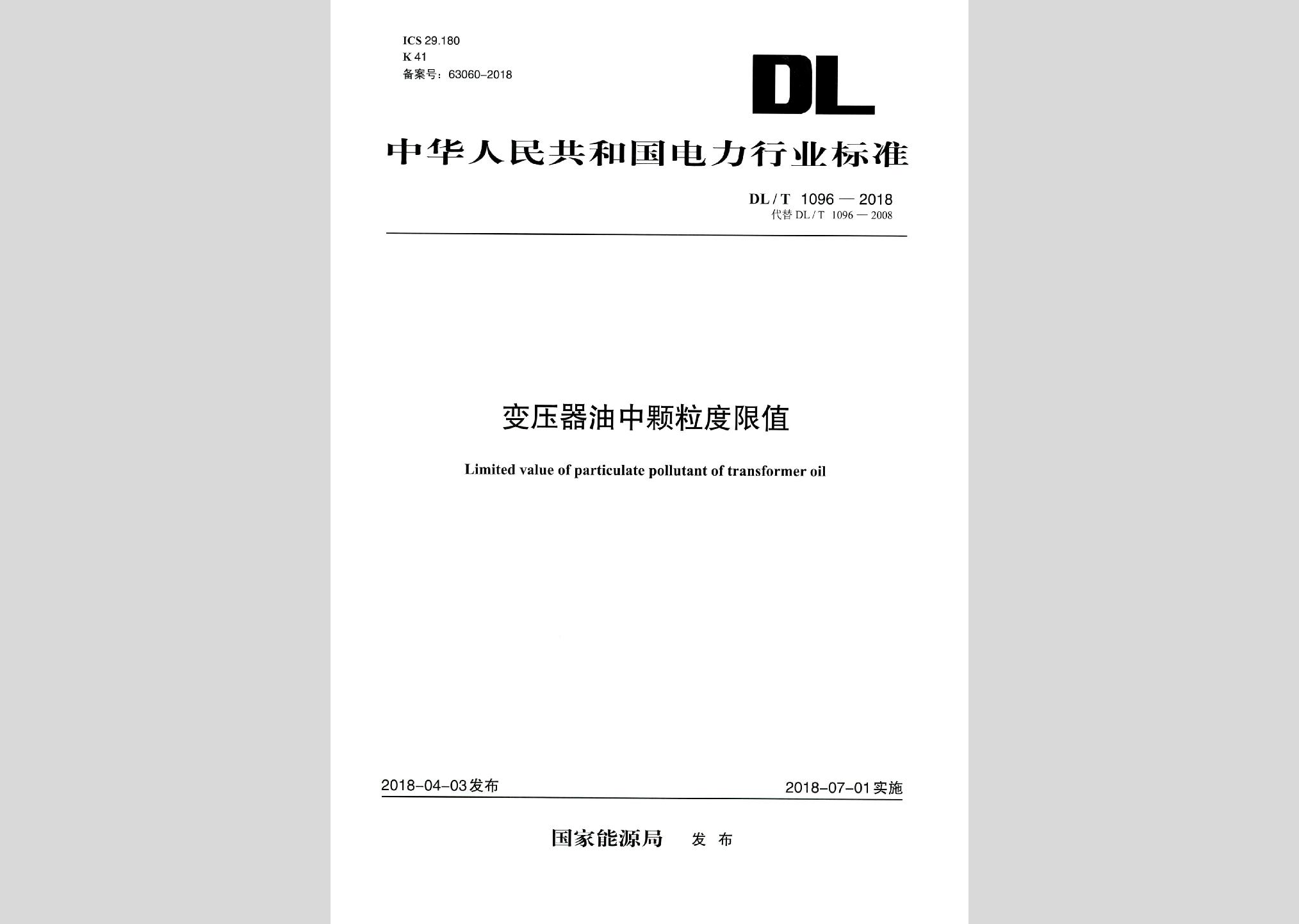 DL/T1096-2018:变压器油中颗粒度限值现行
