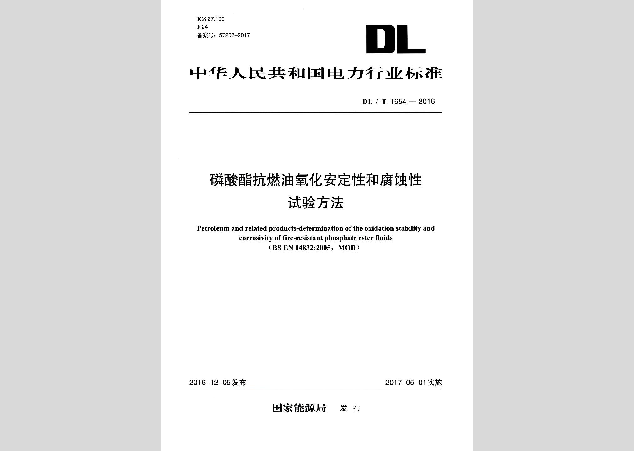 DL/T1654-2016:磷酸酯抗燃油氧化安定性和腐蚀性试验方法现行