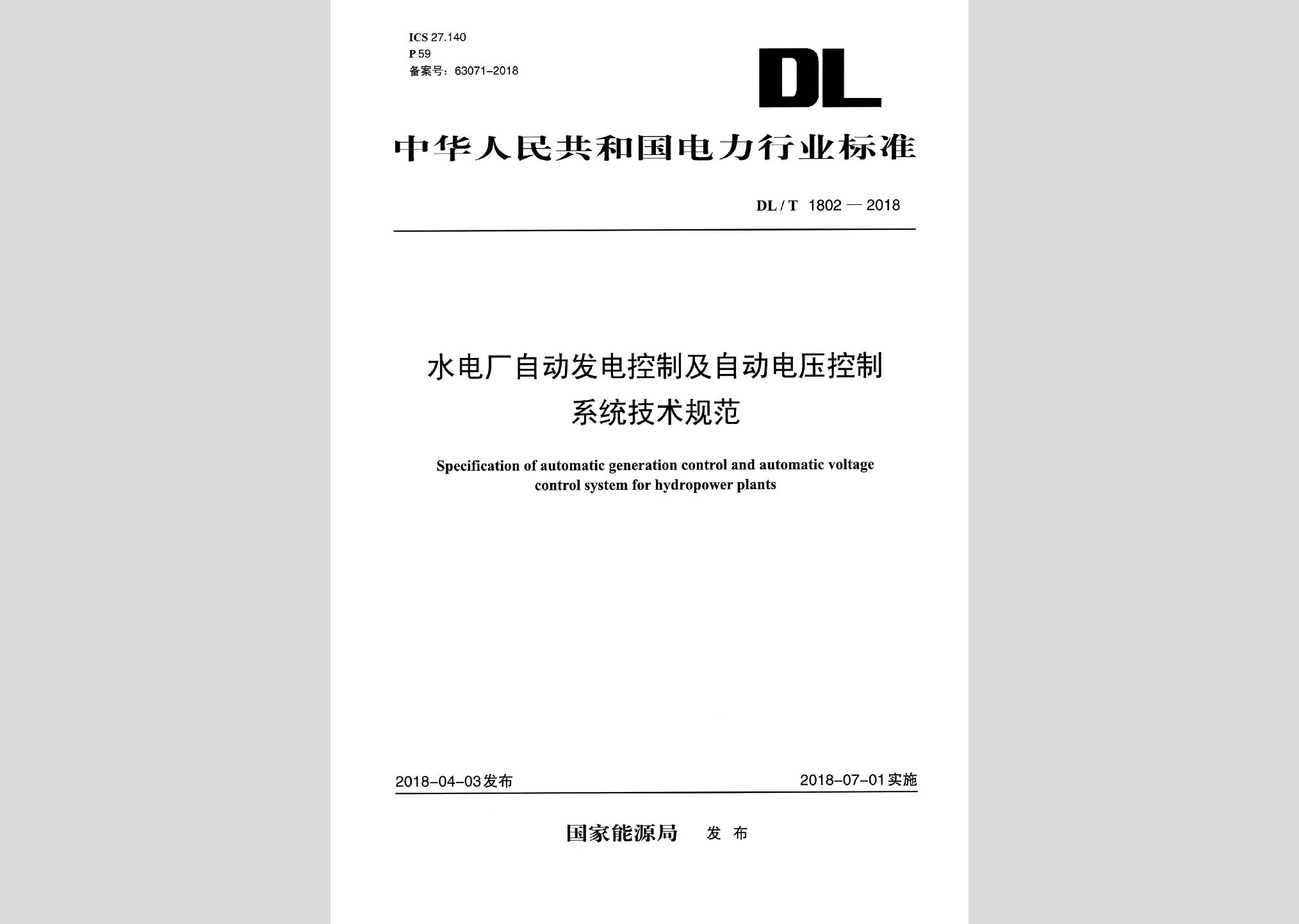 DL/T1802-2018:水电厂自动发电控制及自动电压控制系统技术规范现行