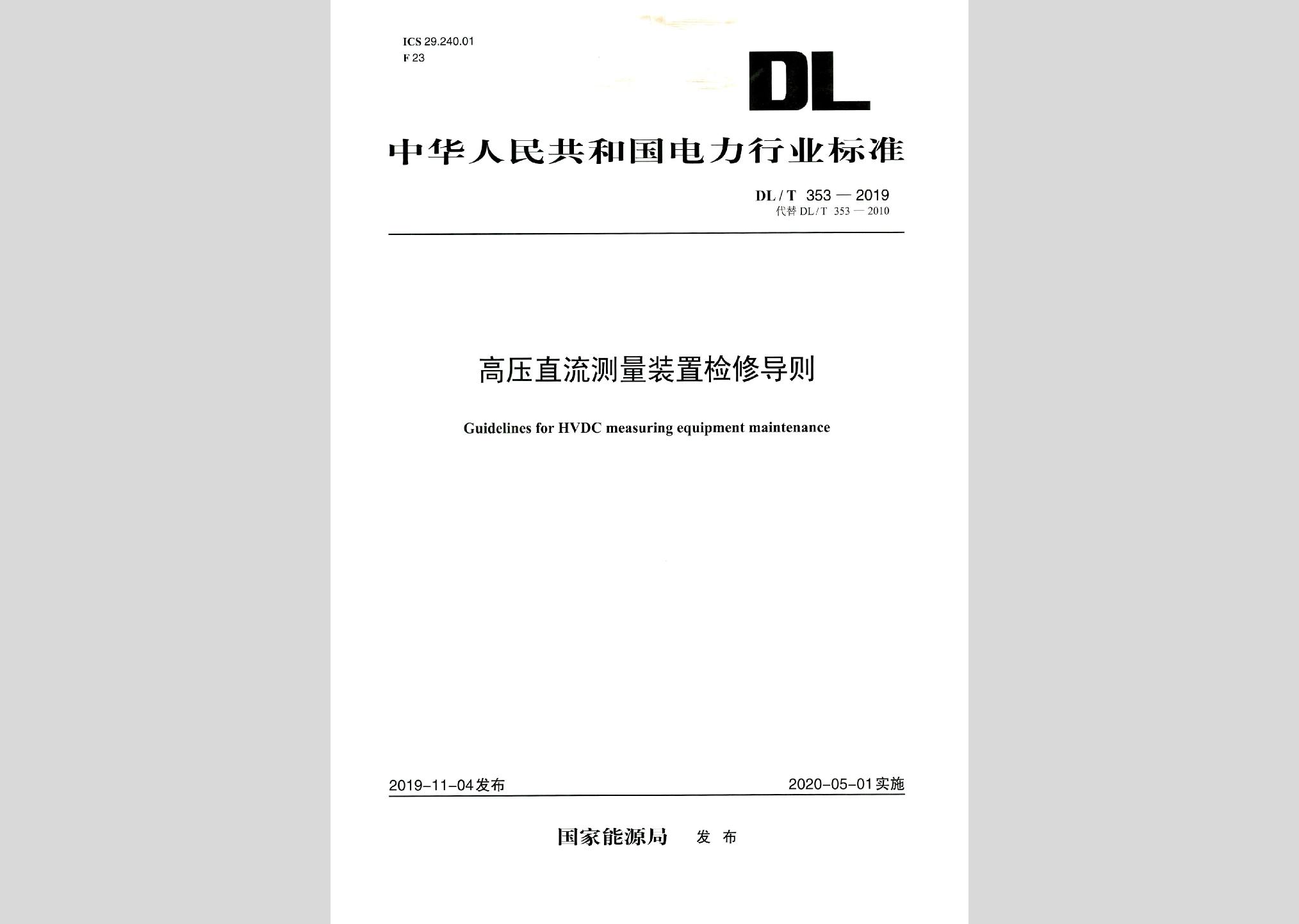 DL/T353-2019:高压直流测量装置检修导则现行