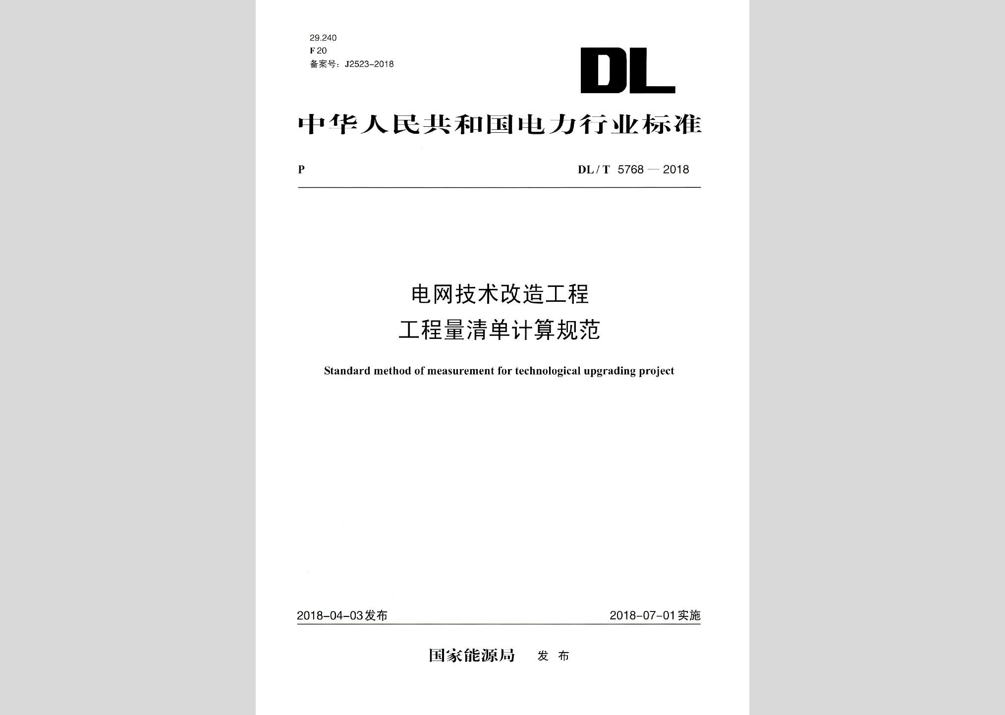 DL/T5768-2018:电网技术改造工程工程量清单计算规范现行