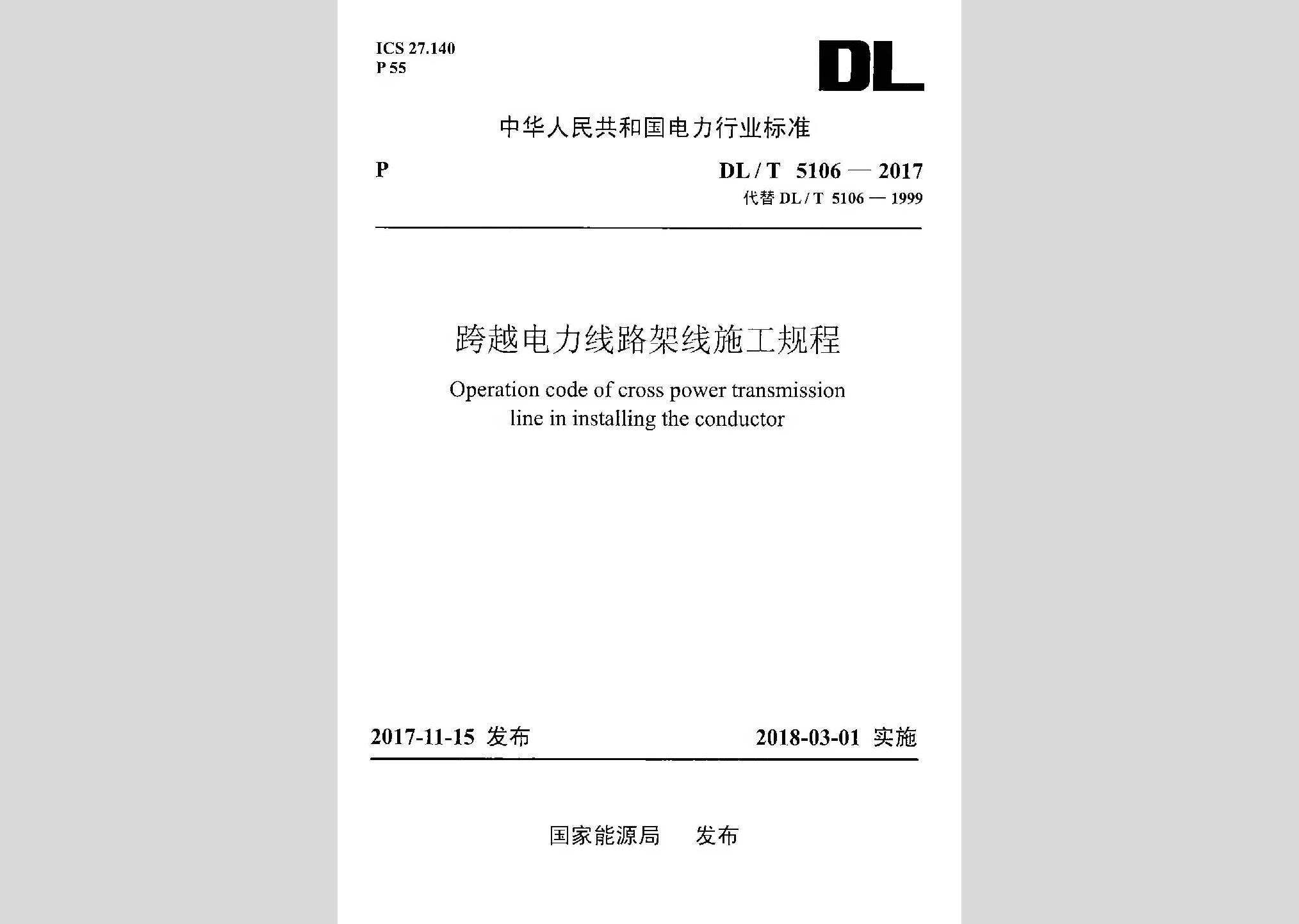DL/T5106-2017:跨越电力线路架线施工规程现行