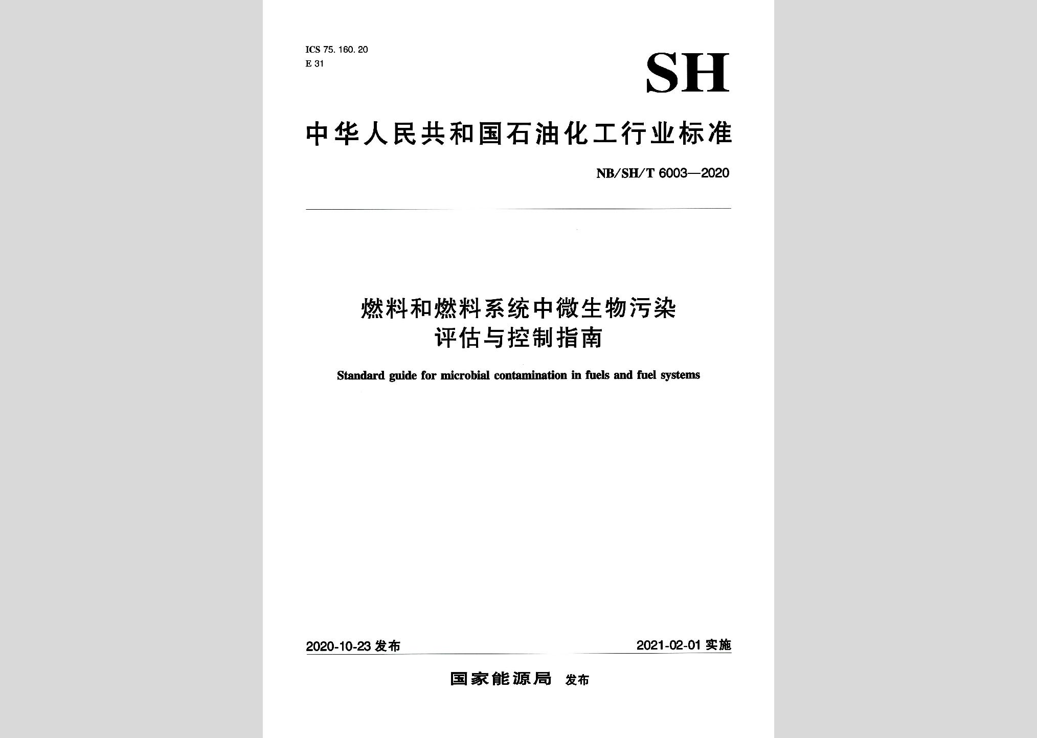 NB/SH/T6003-2020:燃料和燃料系统中微生物污染评估与控制指南现行