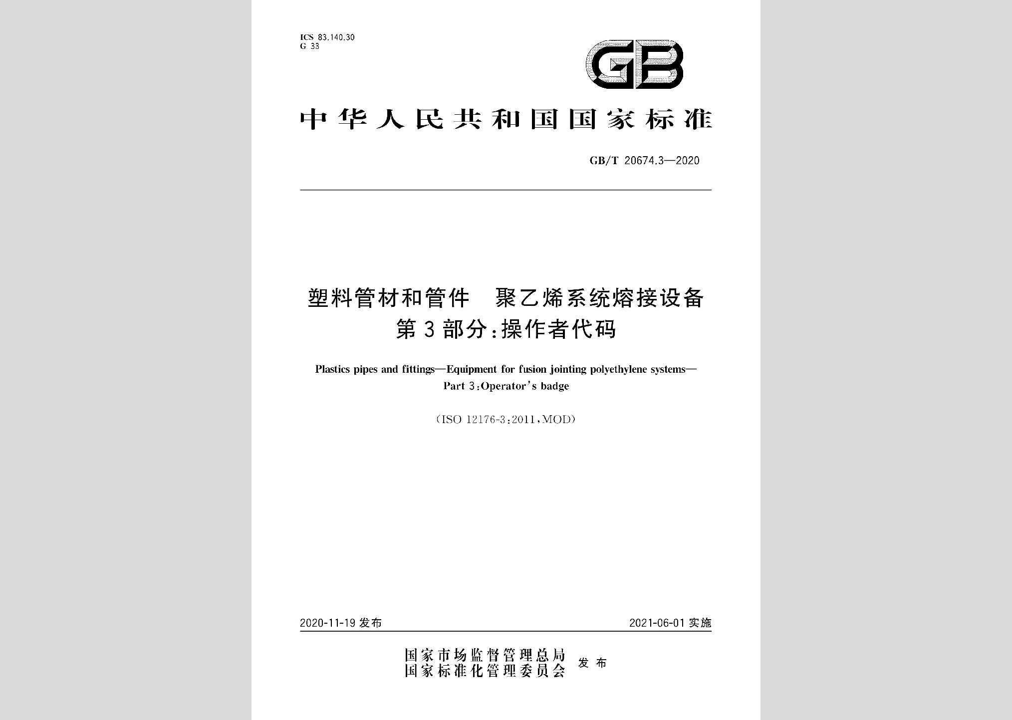 GB/T20674.3-2020:塑料管材和管件聚乙烯系统熔接设备第3部分:操作者代码现行