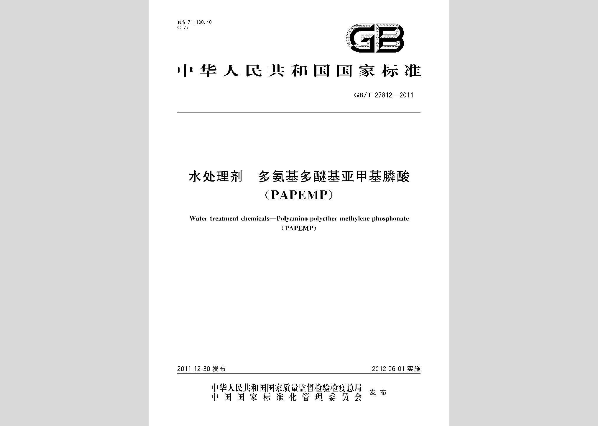 GB/T27812-2011:水处理剂多氨基多醚基亚甲基膦酸(PAPEMP)现行