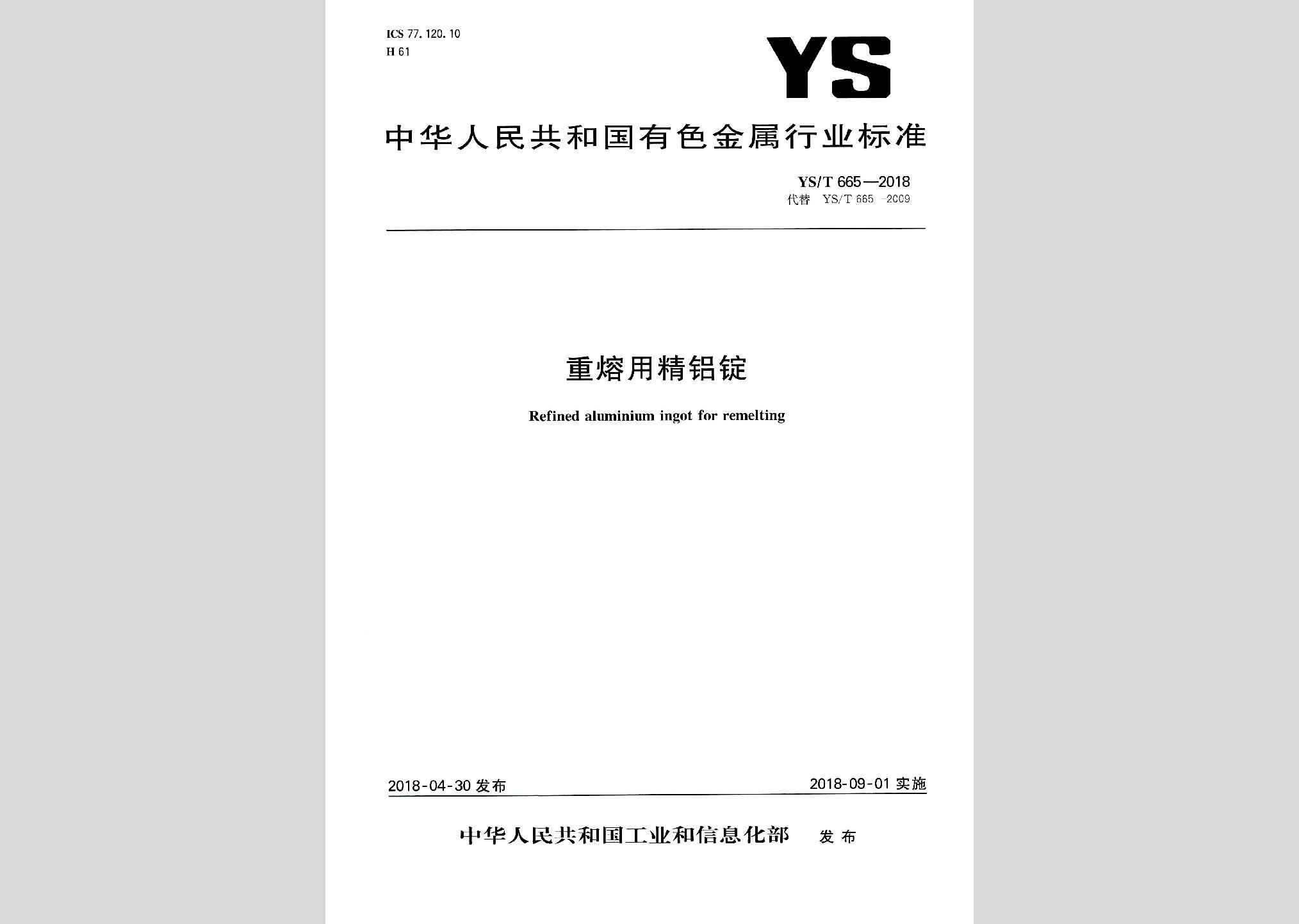 YS/T665-2018:重熔用精铝锭现行