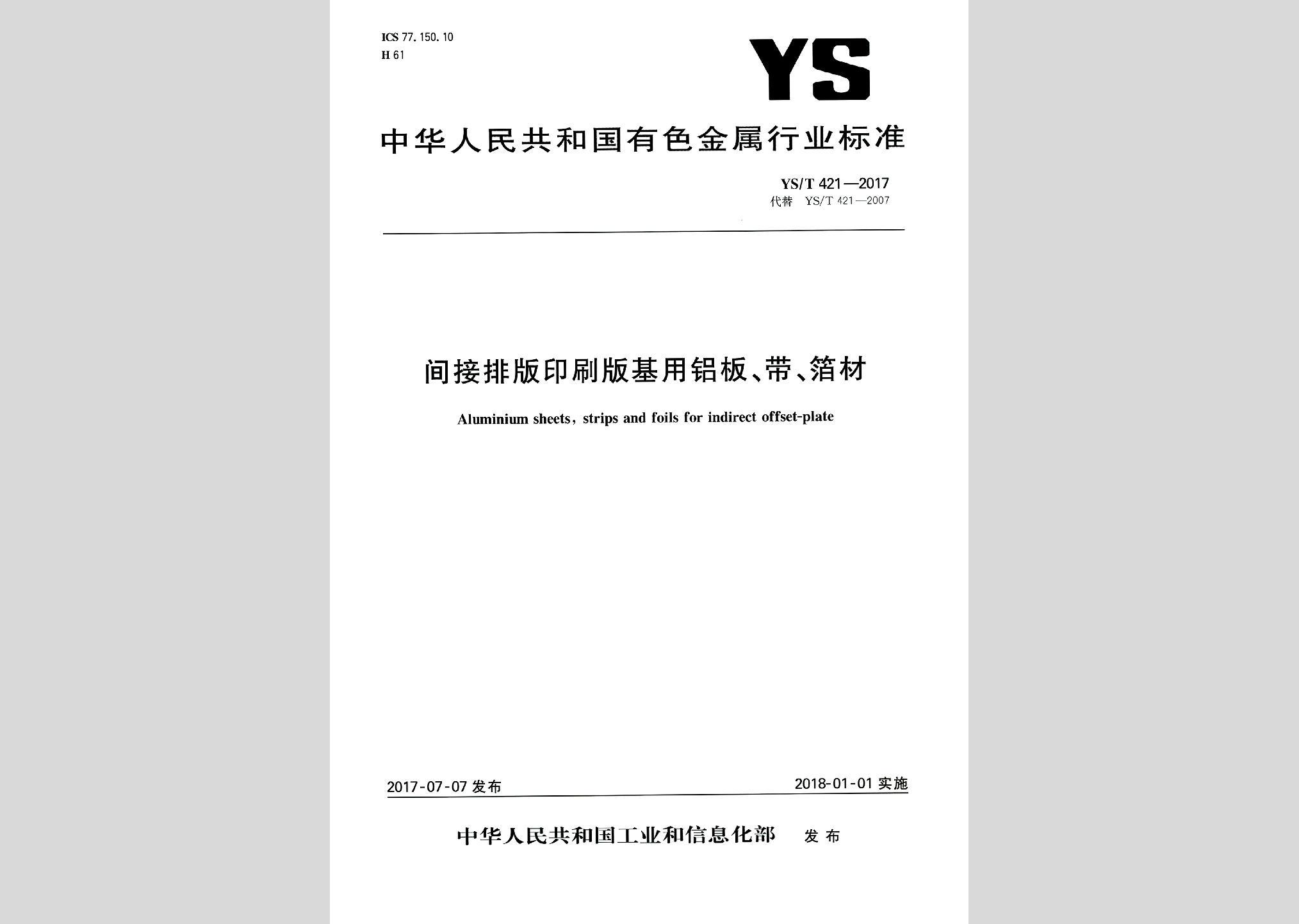 YS/T421-2017:间接排版印刷版基用铝板、带、箔材现行