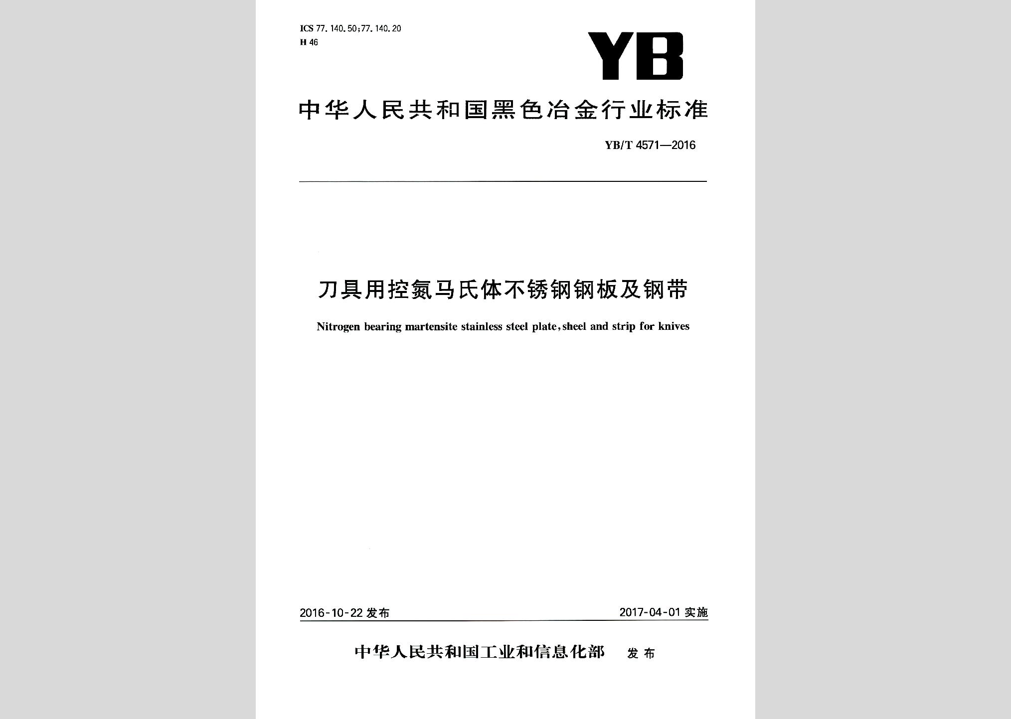 YB/T4571-2016:刀具用控氮马氏体不锈钢钢板及钢带现行