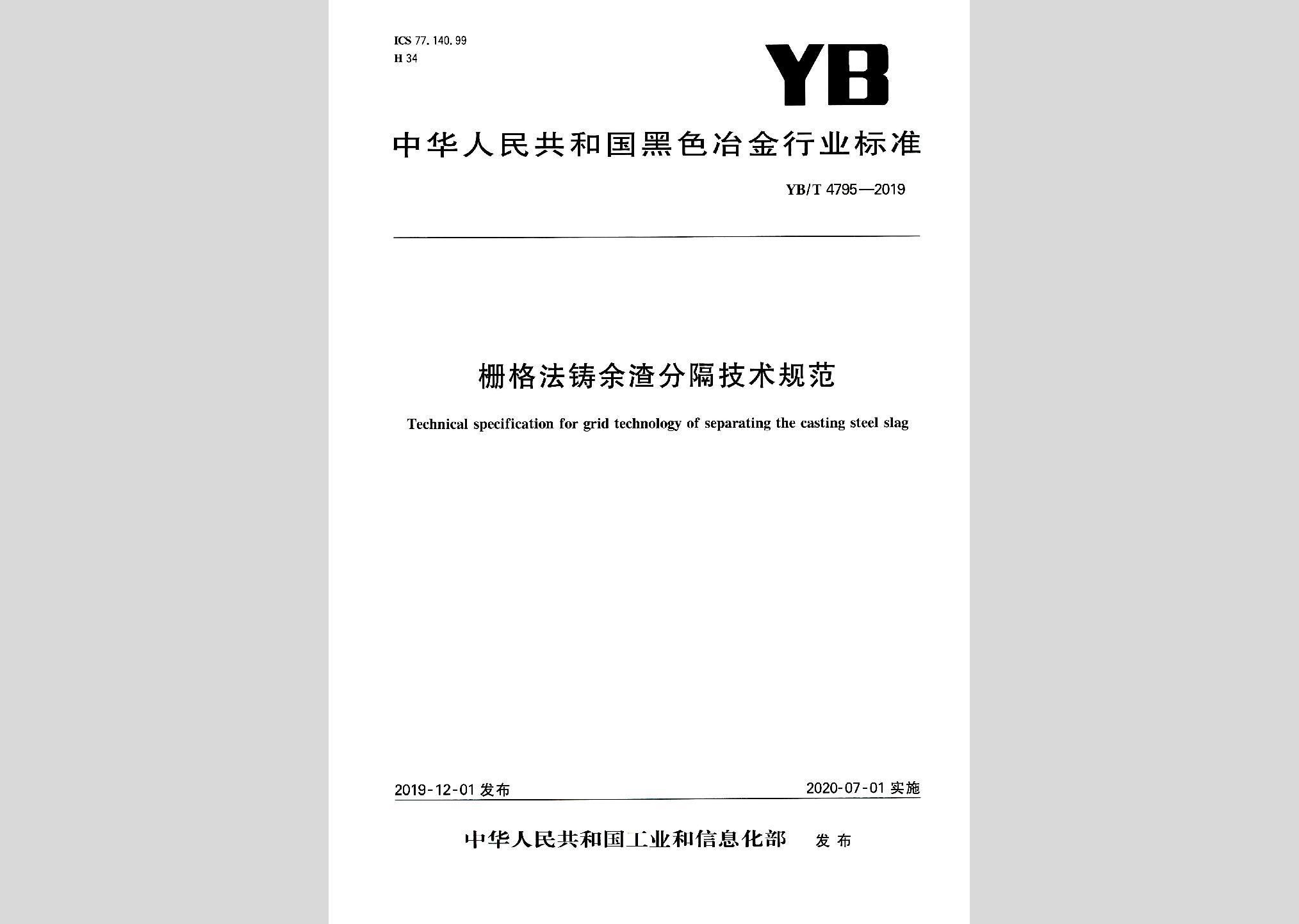 YB/T4795-2019:栅格法铸余渣分隔技术规范现行